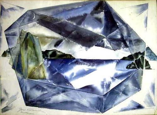 TWO WATERCOLORS ON PAPER; the first a semi-abstract seascape signed l.l. James Kirk Merrick/Martinique, the second a shorescape, signed by Merrick l.r. (American, 1905 - 1985). One with minor foxing. Each 21" x 28 3/4"