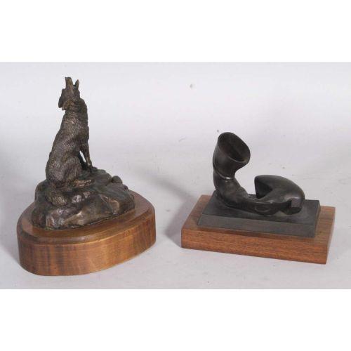 TWO WESTERN BRONZES C.J. Berry bronze titled "Boots" 11/26 together with Bob Green bronze titled "Howling Wolf", the largest 6" CONDITION REPORT: no problems. PACKING AND SHIPPING: We offer packing (double boxed in most cases) and shipping of this item within the Continental United States by USPS or UPS (our choice- boxes over 30lbs or oversized may be recalculated based on buyer's location), NOT INCLUDING INSURANCE (it will be added when we know the sales price) for $40