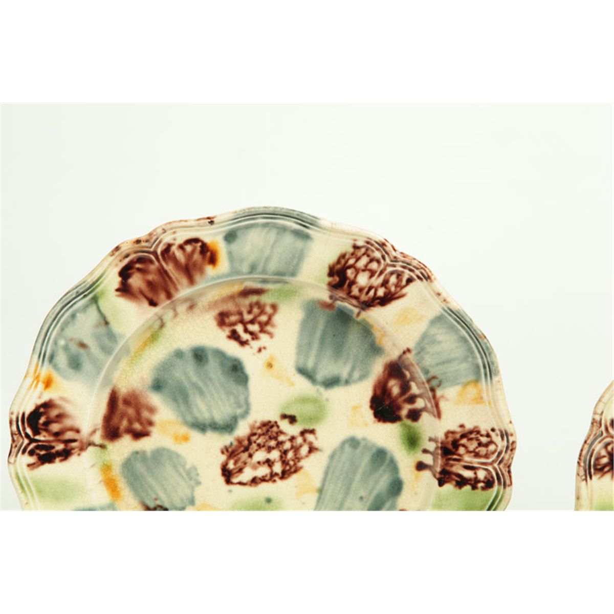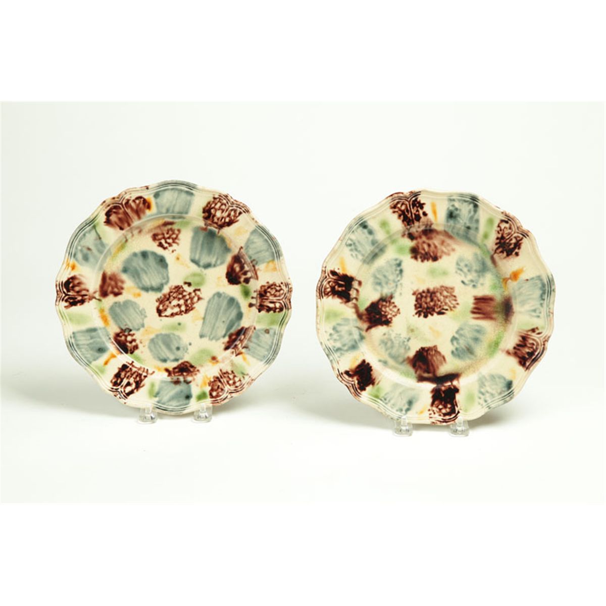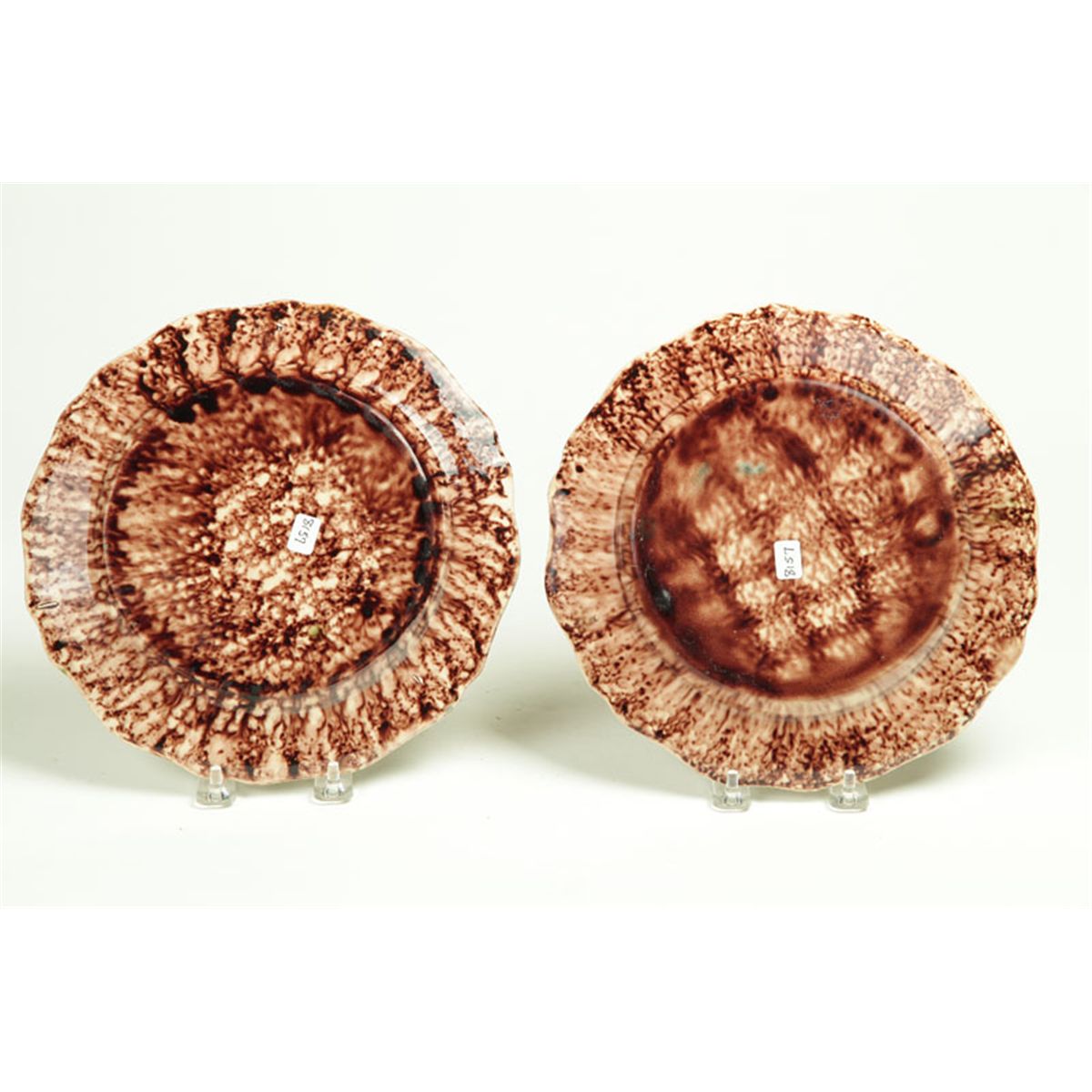 England, 2nd half-18th century, creamware. Scalloped rims and tortoise-shell glaze. Minor glaze loss on one. 9 1/2"d.