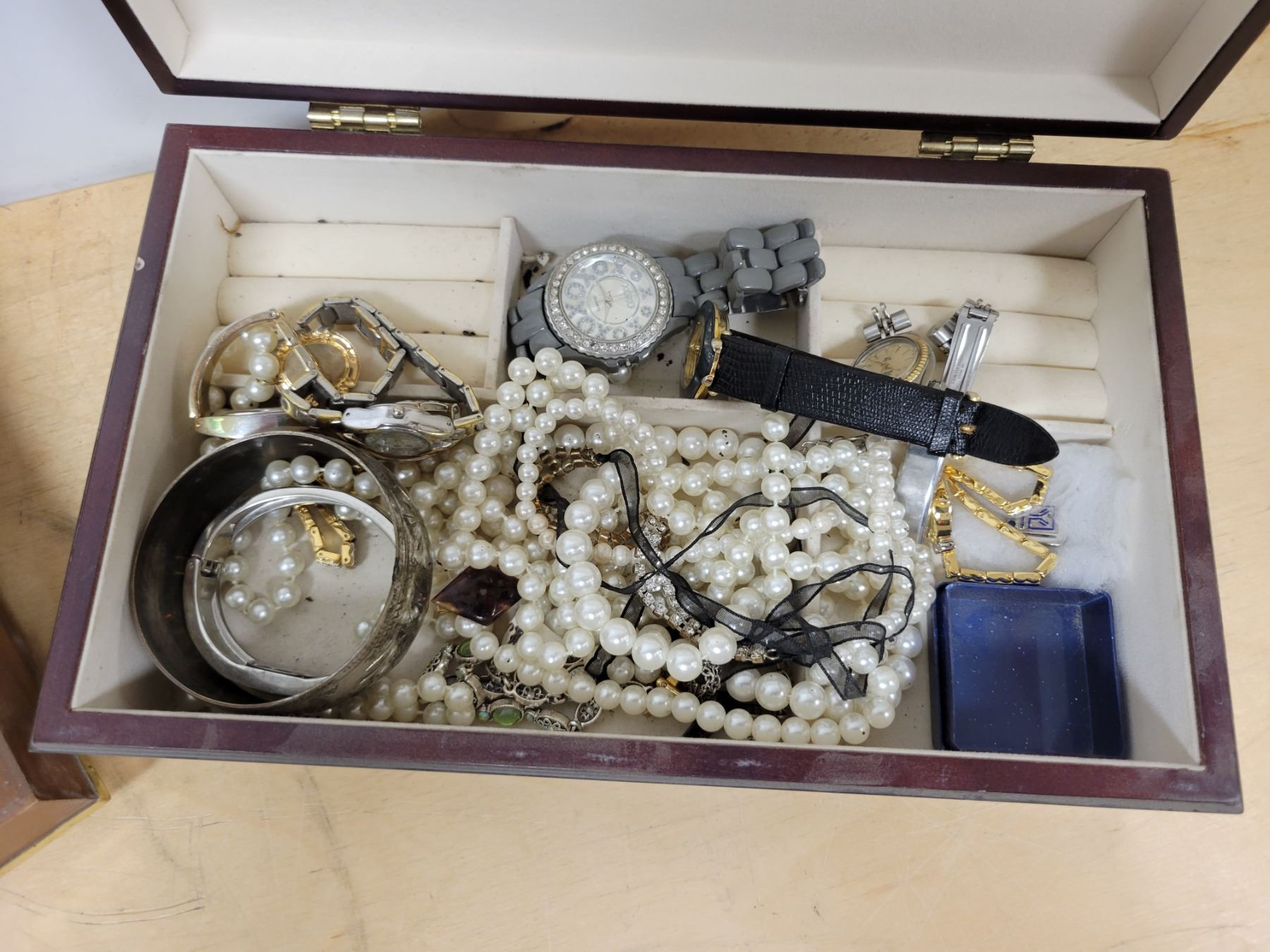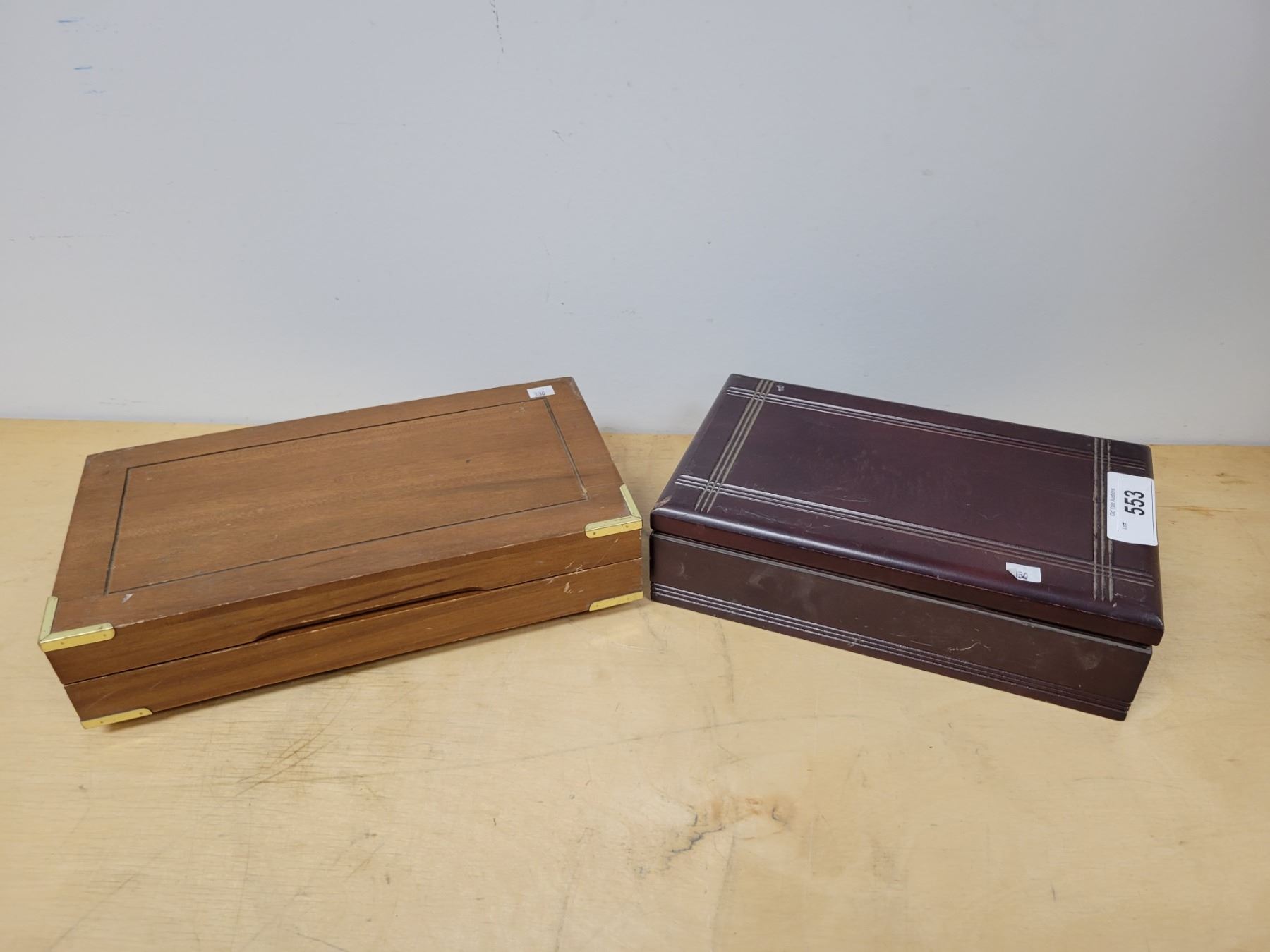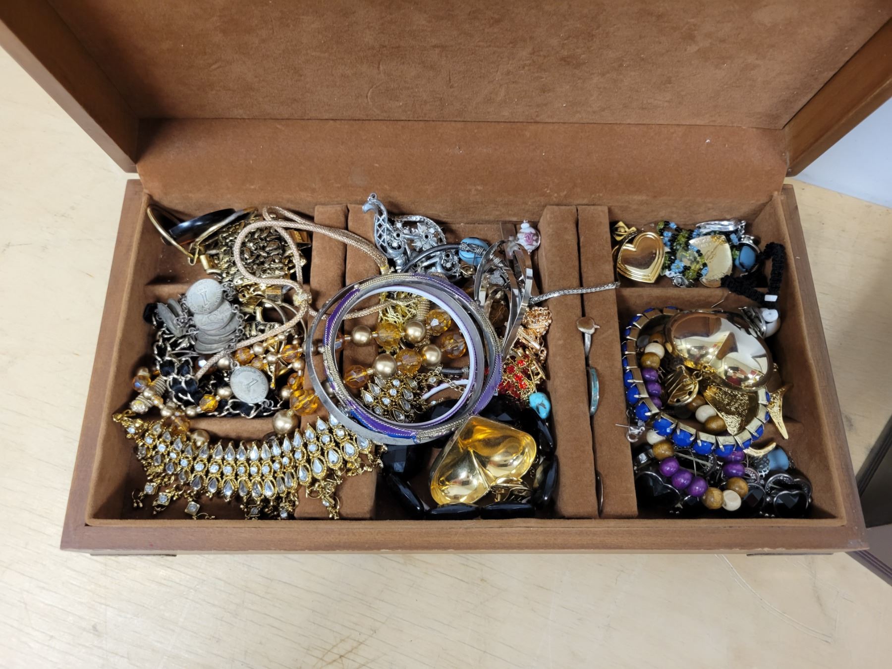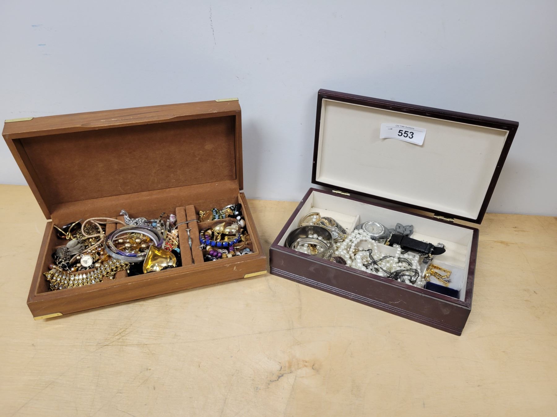 TWO WOOD JEWELRY BOXES W/CONTENTS