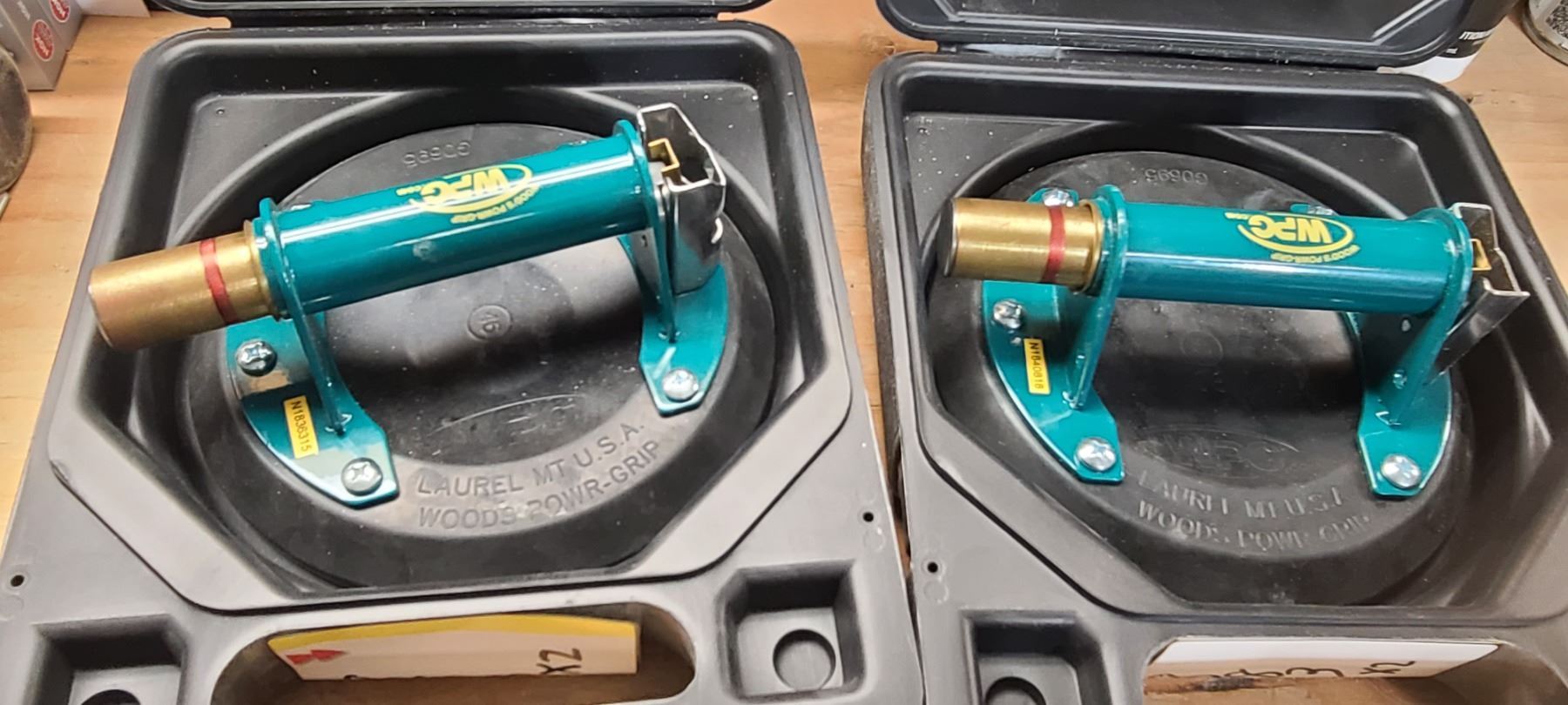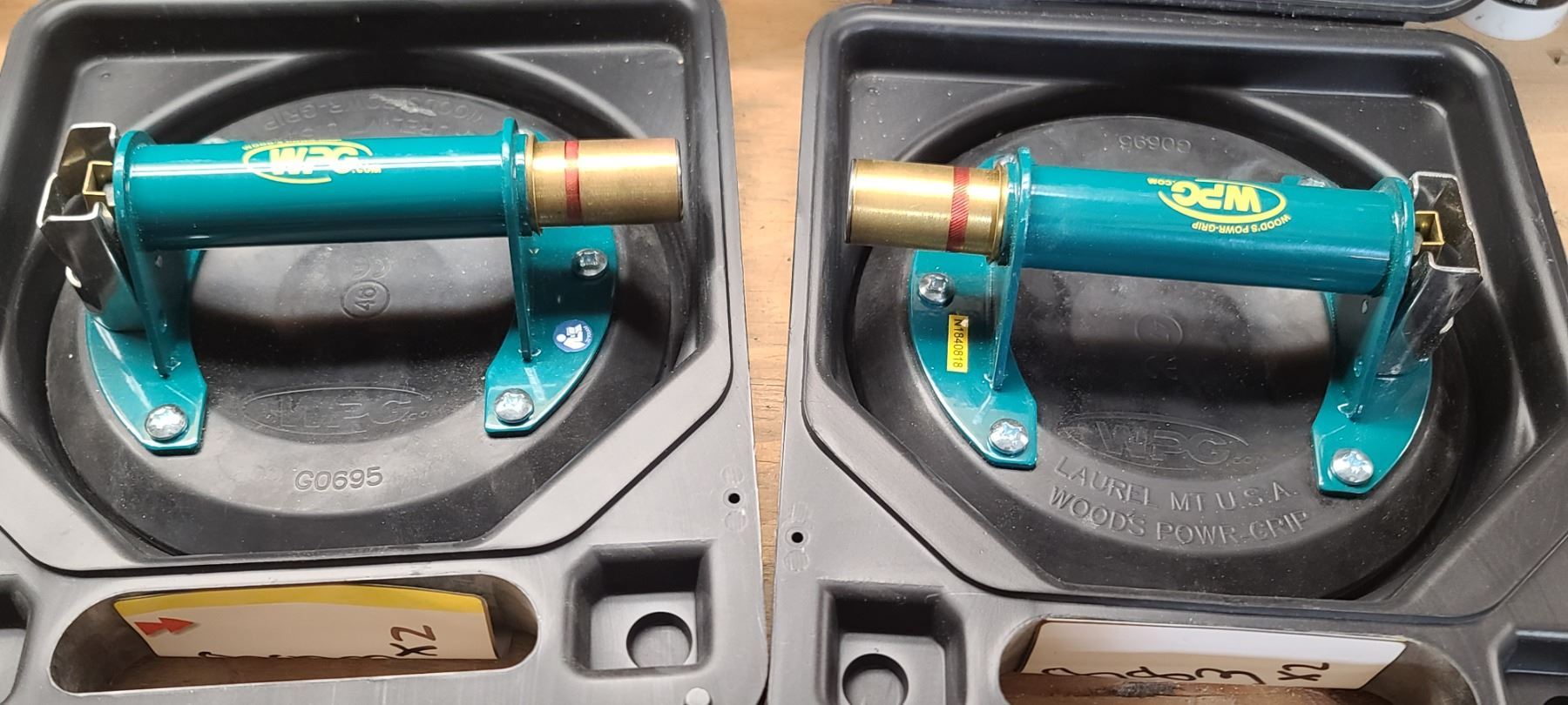 TWO WOOD'S POWR-GRIP GLASS CUP HOLDERS