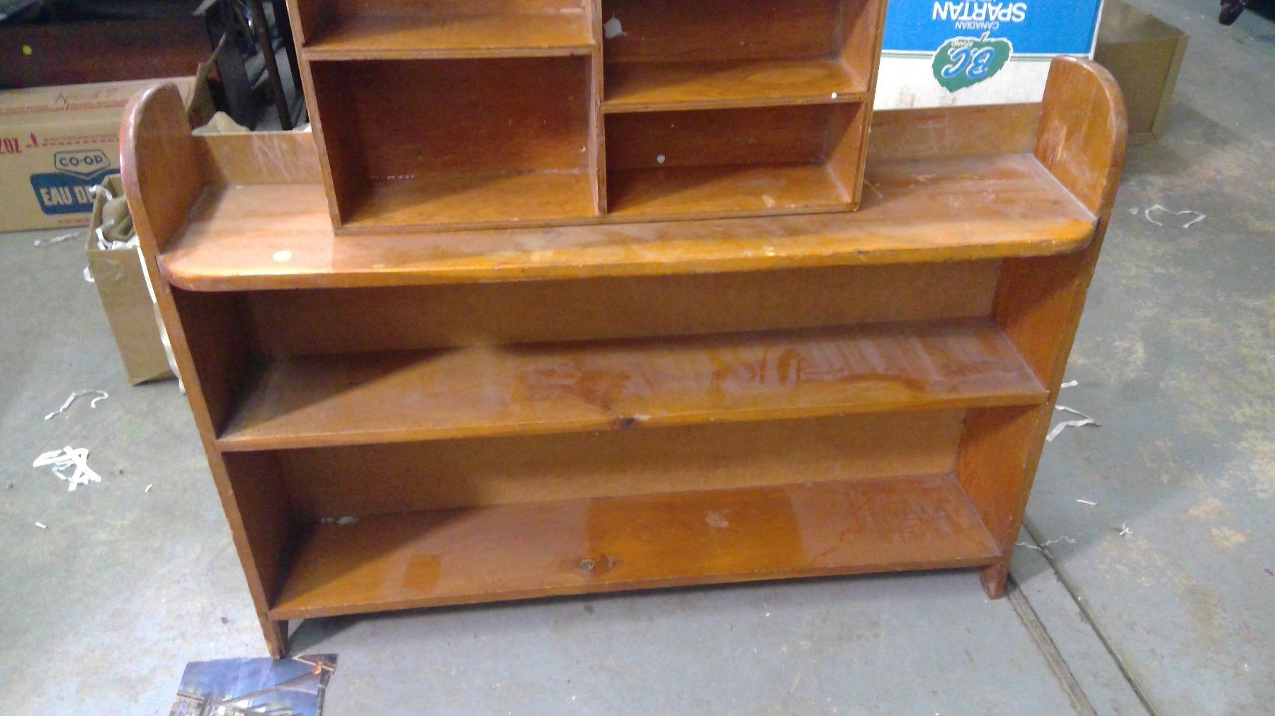 TWO WOODEN SHELVES - 24" X16" X 5" AND 42" X 10" X 31"