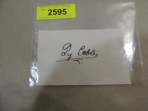 TY COBB CUT SIGNATURE AUTOGRAPH NO COA. AS SHOWN. VIEW PICTURE FOR DETAIL. PLEASE BE ADVISED, AND INFORMED REGARDING SIGNATURES OR AUTOGRAPHS THAT WE SELL AT AUCTION: WE ARE NOT AUTHENTICATORS, AND WE DO NOT AUTHENTICATE, OR VALIDATE ANY AUTOGRAPHS OR SIGNATURES THAT WE OFFER AT AUCTION. SOME AUTOGRAPHS OR SIGNATURES MAY COME WITH AN AUTHENTICATION FROM ANY ONE OF LITERALLY HUNDREDS OF AUTHENTICATORS ACROSS THE COUNTRY, AND AROUND THE WORLD. WE DO NOT ENDORSE ANY AUTHENTICATOR, NOR DO WE GUARANTEE THAT ANY AUTOGRAPH OR SIGNATURE IS AUTHENTIC, OR THAT IT WILL PASS AUTHENTICATION BY ANY AUTHENTICATOR. ALL AUTOGRAPHS OR SIGNATURES ARE SOLD