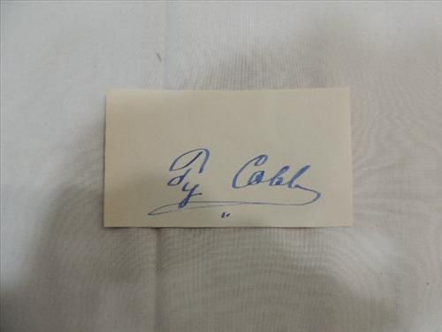 TY COBB CUT SIGNATURE AUTOGRAPH . NO COA. AS SHOWN. VIEW PICTURE FOR DETAIL. PLEASE BE ADVISED, AND INFORMED REGARDING SIGNATURES OR AUTOGRAPHS THAT WE SELL AT AUCTION: WE ARE NOT AUTHENTICATORS, AND WE DO NOT AUTHENTICATE, OR VALIDATE ANY AUTOGRAPHS OR SIGNATURES THAT WE OFFER AT AUCTION. SOME AUTOGRAPHS OR SIGNATURES MAY COME WITH AN AUTHENTICATION FROM ANY ONE OF LITERALLY HUNDREDS OF AUTHENTICATORS ACROSS THE COUNTRY, AND AROUND THE WORLD. WE DO NOT ENDORSE ANY AUTHENTICATOR, NOR DO WE GUARANTEE THAT ANY AUTOGRAPH OR SIGNATURE IS AUTHENTIC, OR THAT IT WILL PASS AUTHENTICATION BY ANY AUTHENTICATOR. ALL AUTOGRAPHS OR SIGNATURES ARE SOLD
