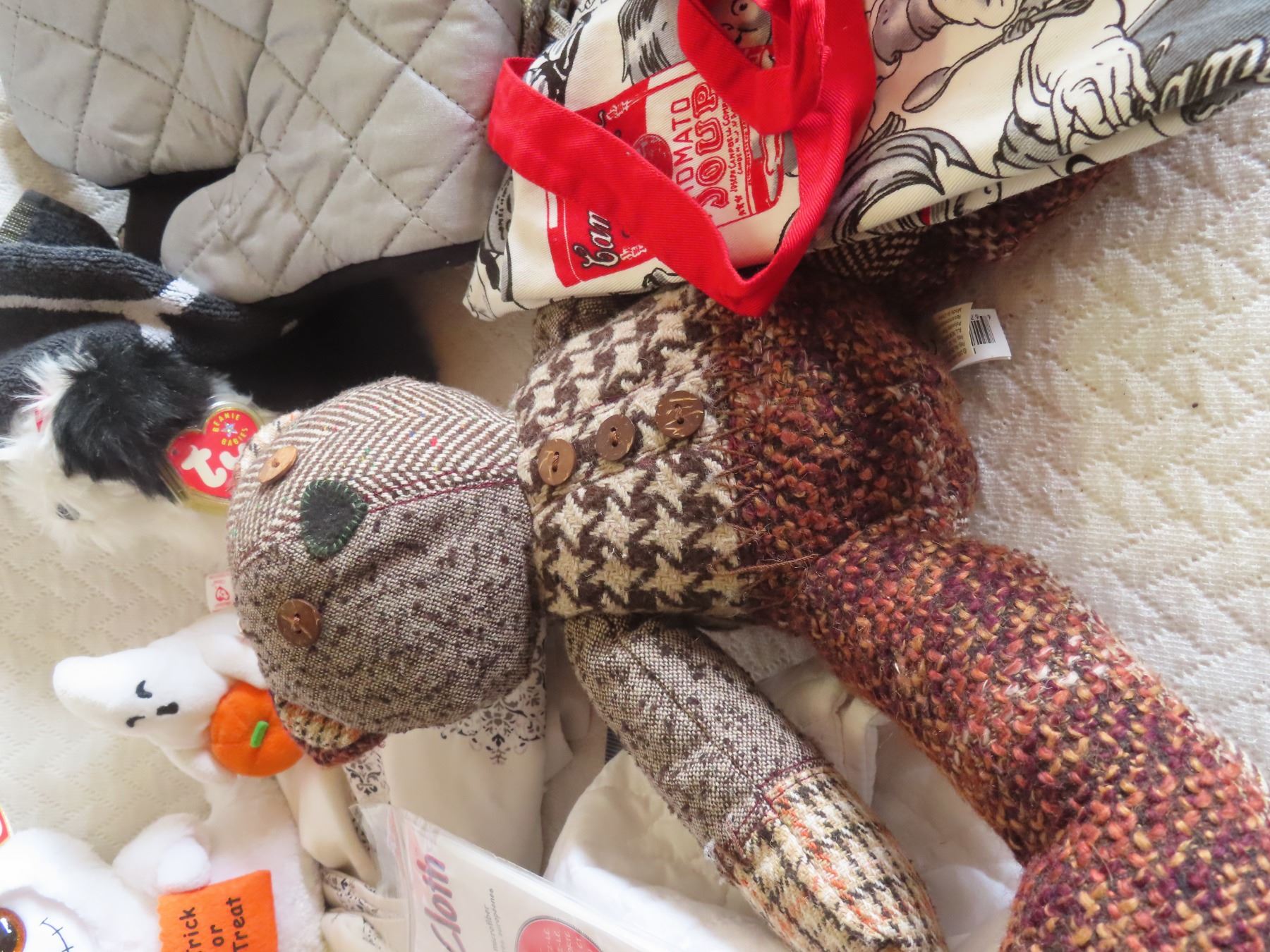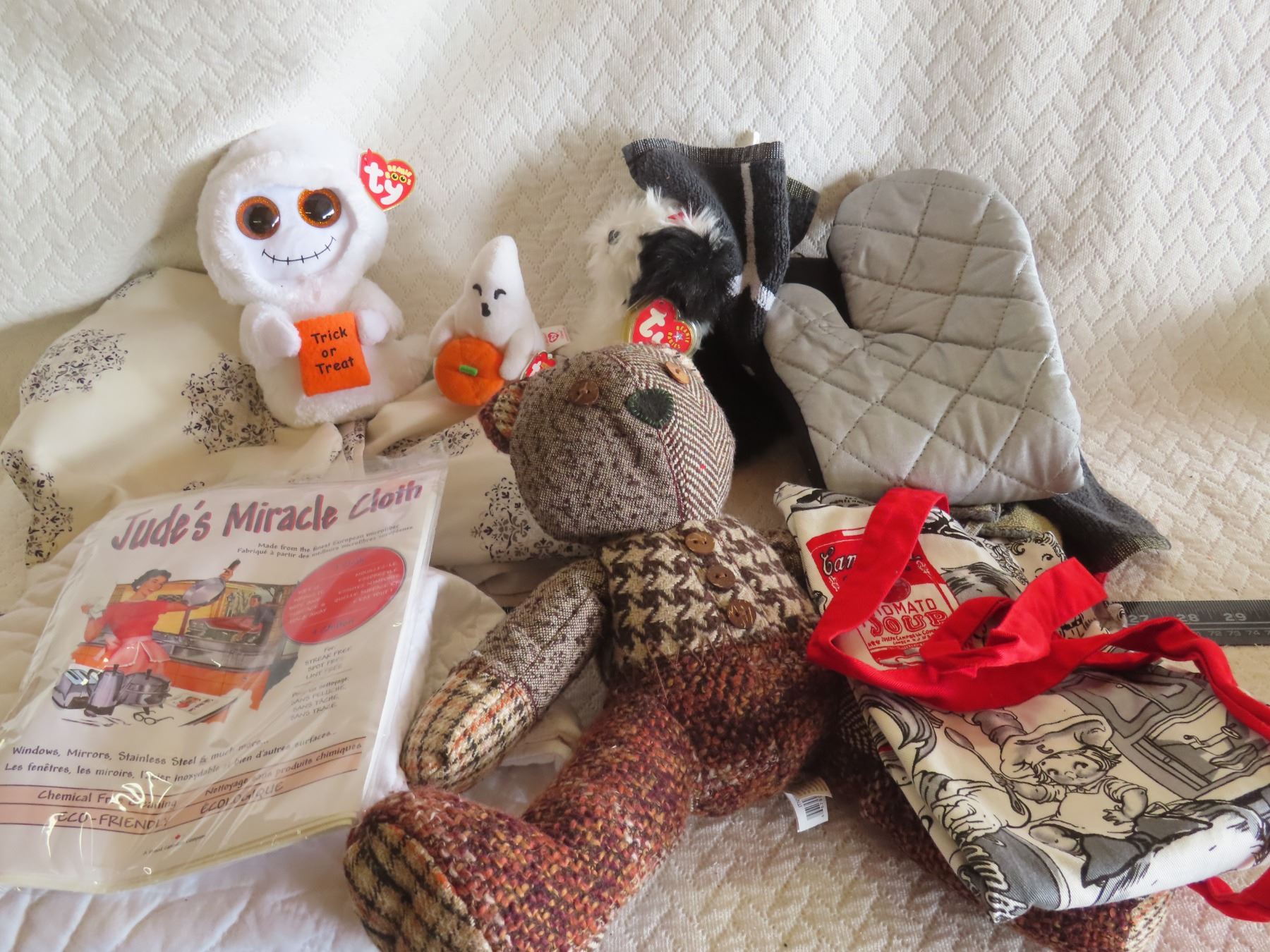 TY Halloween beanie babies, fossil doll, Campbell's soup bib