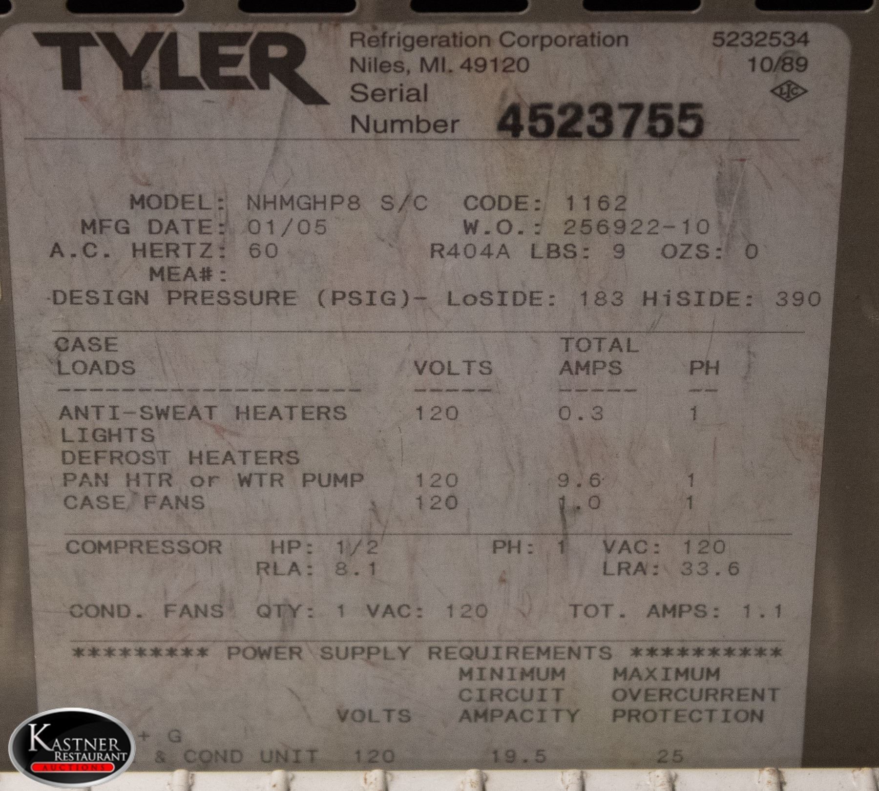 MODEL # NHMGHP8, 120 VOLTS, 60 HZ, PHASE 1, 102" X 44" X 45