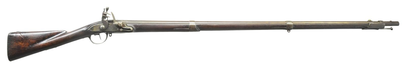 BUTTPLATE RECONVERTED FROM PERCUSSION. Cal. 69. NSN. Bbl. 44 5/8". Standard configuration. Breech portion of bbl. stamped w/ “P”, eagle head & “V” proofs, along w/ “US” & “S.N.Y”. Bbl. has been reconverted from drum & nipple configuration. Type one lock w/ flat plate, reinforced cock, faceted pan, curled toe to frizzen & bulbous feather spring is undated w/ eagle over “US” in front of cock & “SPRINGFIELD” vertically behind. Stock has a deep fluted comb. Triggerguard has spear type finials. Buttplate is dated 1800 on tang. Bbl. is held by 3 spring retained bands. Sling loops are missing. Stock is carved “MM” behind the sideplate. CONDITION: good as reconverted. Iron parts retaining medium brown patina w/ overall fine pitting. Rear portion of bbl. has many deep scars from being held in a vice while attempting to remove the breech plug. Stock has old hand worn surface w/ many marks & dings. There is a good chunk of wood missing from stock at left side of bbl. tang. Bbl. channel is good w/ minor losses. (01-20131/MGM). ANTIQUE. $1,200-2,000.