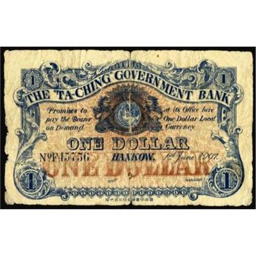 <style type="text/css"> body, td, th { font-family: Arial, Helvetica, sans-serif; font-size: 12px; color: #482424; margin: 0px; padding: 0px; } #header { background-image: url(http://www.bowersandmerena.com/ebay/images/template_v3_01.gif); clear: both; background-color: #590303; border-top-width: 2px; border-top-style: solid; border-top-color: #B38C4F; } #header #header_wrapper { height: 75px; clear: both; width: 800px; margin-right: auto; margin-left: auto; background-image: url(http://www.bowersandmerena.com/ebay/images/template_v3_03.gif); background-repeat: no-repeat; background-position: right; color: #F3EDCC; } #header #header_wrapper #header_logo { float: left; height: 75px; width: 444px; background-image: url(http://www.bowersandmerena.com/ebay/images/template_v3_02.gif); background-repeat: no-repeat; font-size: 10px; text-transform: capitalize; color: #B38C4F; } #header #header_wrapper #header_right { float: left; height: 75px; width: 356px; text-align: right; } #header #header_wrapper #header_right #headerLoginBtn { margin-bottom: 30px; } #header #header_wrapper #header_right input#txtSearch { color: #B49056; border: 1px solid #B49056; width: 175px; padding-top: 3px; padding-right: 3px; padding-bottom: 4px; padding-left: 3px; } #nav { height: 37px; background-image: url(http://www.bowersandmerena.com/ebay/images/template_v3_05.gif); clear: both; } #nav #nav_wrapper { height: 35px; width: 800px; margin-right: auto; margin-left: auto; border-left-width: 1px; border-left-style: solid; border-left-color: #B38C4F; } #nav #nav_wrapper a { padding-right: 15px; padding-left: 15px; border-right-width: 1px; border-right-style: solid; border-right-color: #B38C4F; height: 25px; padding-top: 10px; display: block; float: left; text-decoration: none; font-weight: bold; color: #5D0303; } #nav #nav_wrapper a:hover { color: #B38C4F; } #nav #nav_wrapper #search { float: right; padding-top: 7px; } #nav #nav_wrapper #search #txtSearch { font-family: Arial, Helvetica, sans-serif; font-size: 10px; text-transform: uppercase; color: #D2AE75; border: 1px solid #B38C4F; padding: 3px; } #content_bgd { background-image: url(http://www.bowersandmerena.com/ebay/images/template_v3_09.gif); background-repeat: repeat-y; background-position: center; padding-top: 15px; padding-bottom: 15px; background-color: #FBFBDB; } #content_wrapper { clear: both; height: auto; width: 800px; margin-right: auto; margin-left: auto; } .LotDetailWhite { line-height:normal; font-size:13px; font-family: arial,helvetica,sans-serif; color: White; font-weight: bold; } .LotDetailInformation { line-height:normal; font-size: 13px; font-family: arial,helvetica,sans-serif; } .LotDetailMessage { line-height:normal; font-size: 13px; font-family: arial,helvetica,sans-serif; color: red; } } tr.HeaderAuctionTitle td { color: #000000; font-weight: bold; padding: 2px; background-image: url(http://www.bowersandmerena.com/ebay/images/template_v3_05.gif); background-repeat: repeat-x; border-bottom-width: 1px; border-bottom-style: solid; border-bottom-color: #B38C4F; } table.AuctionSummary a, table.AuctionSummary a:link, table.AuctionSummary a:visited { color: #0000FF; text-decoration: none; } } td.tableHeaderLeft { border-left-width: 1px; border-left-style: solid; border-left-color: #B38C4F; } td.tableHeaderRight { border-right-width: 1px; border-right-style: solid; border-right-color: #B38C4F; } td.tableCellMiddle { border-left-width: 1px; border-left-style: solid; border-left-color: #B38C4F; border-right-width: 1px; border-right-style: solid; border-right-color: #B38C4F; padding: 5px; } tr.footer td { border-top-width: 1px; border-top-style: solid; border-top-color: #B38C4F; } </style> </head> <body> <div id="header"> <div id="header_wrapper"> <div id="header_logo"> </div> <div id="header_right"> </div> </div> </div> <div id="nav"> <div id="nav_wrapper"> <a href="http://www.bowersandmerena.com">Our eBayLive Auctions</a> <a href="#PaymentInfo">Payment Information</a> <a href="#ShippingInfo">Shipping Information</a> <a href="#About">About Bowers and Merena</a> </div> </div> <div id="content_bgd"> <div id="content_wrapper"> <table width="100%" border="0" cellpadding="5" cellspacing="0" class="AuctionSummary"> <tbody> <tr class="HeaderAuctionTitle" style="height: 25px;"> <td align="left" class="tableHeaderLeft" > </td> <td align="center" class="tableHeaderRight"> <span style="font-size: large;">Lot #22. China--Empire. Ta Ching Government Bank, Hankow Branch, 1907 Issue.</span> </td> </tr> <tr> <td colspan="3" class="tableCellMiddle"> Lot of 2 remainder notes, Hankow, P-A66r, $1, 1907, attractive VG to VG+ examples.
