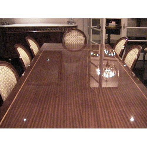 Beautiful Burlwood Table and 10 chairs. 2 leaves, to extend or decrease table size. Table is in perfect condition a true piece of art. French design. Marketry,. Wooden Chairs are beautifully sewn and raised. This is quite an elegant piece to own, great for fancy meals and parties. This table and chair set, is truly brings awe to your dining room. Making it better than perfect.