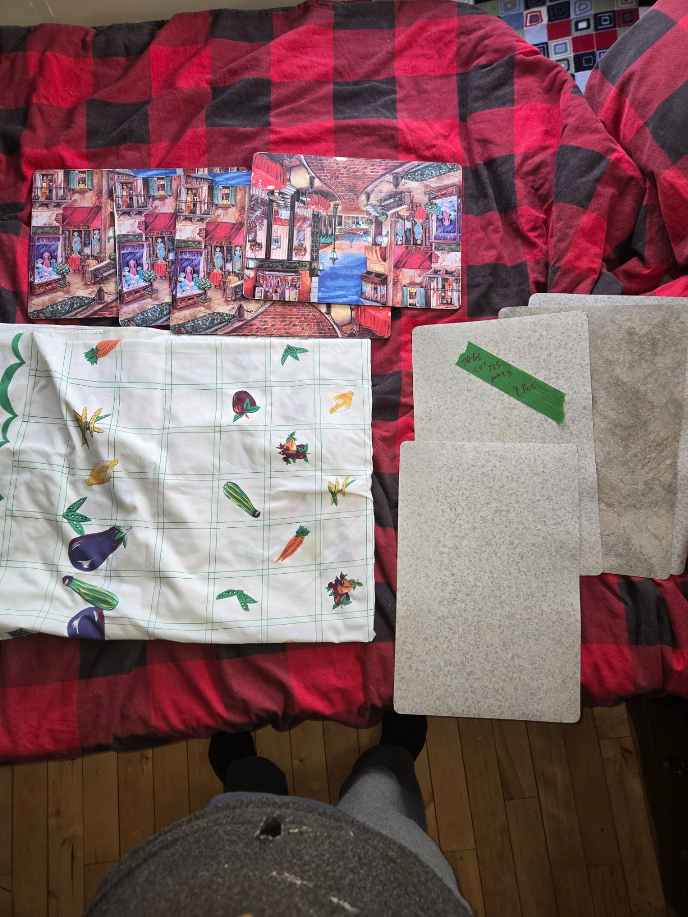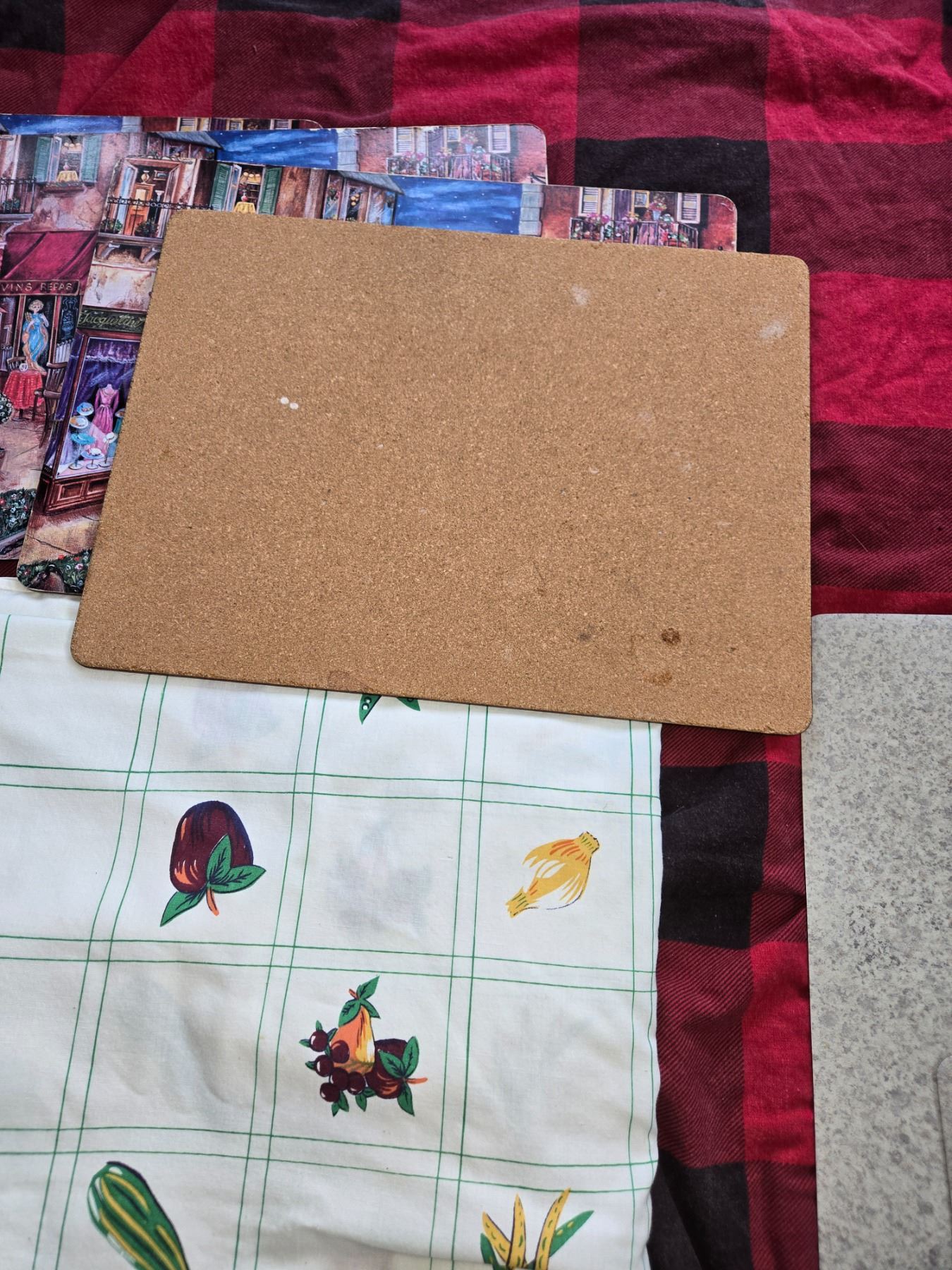 Table Cloth, 4 Vinyl placemats, 4 Cork Backed Placemats