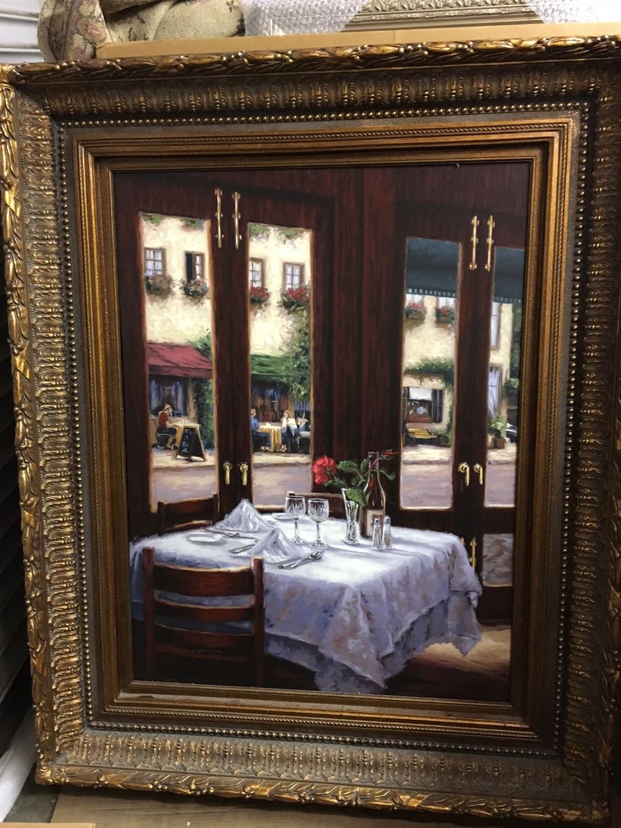 Recognize this famous New York Italian eatery? Magnificently framed this picture window into the romantic past once hung in the famed Tuscany Ristorante in California until they redecorated in 2015. A perfect piece to set the mood in any restaurant décor, or dining room at home, this remarkable work of art by California artist Stephen Bergstrom is a sold-out limited edition signed and numbered by the artist. Image size 40x30"it frames out at 55x45"