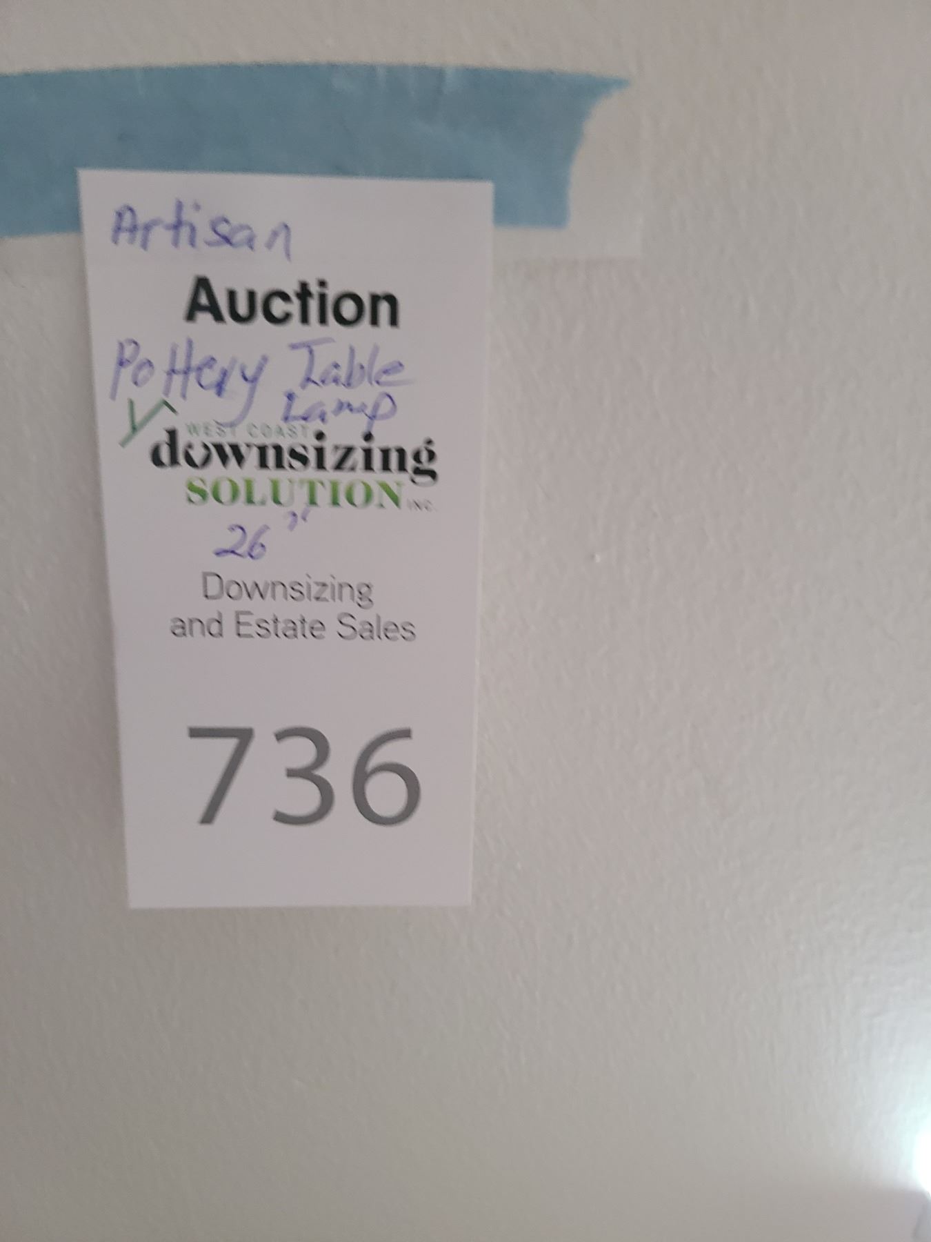 Artisan Pottery table lamp 26”. Pickup at 9 am.