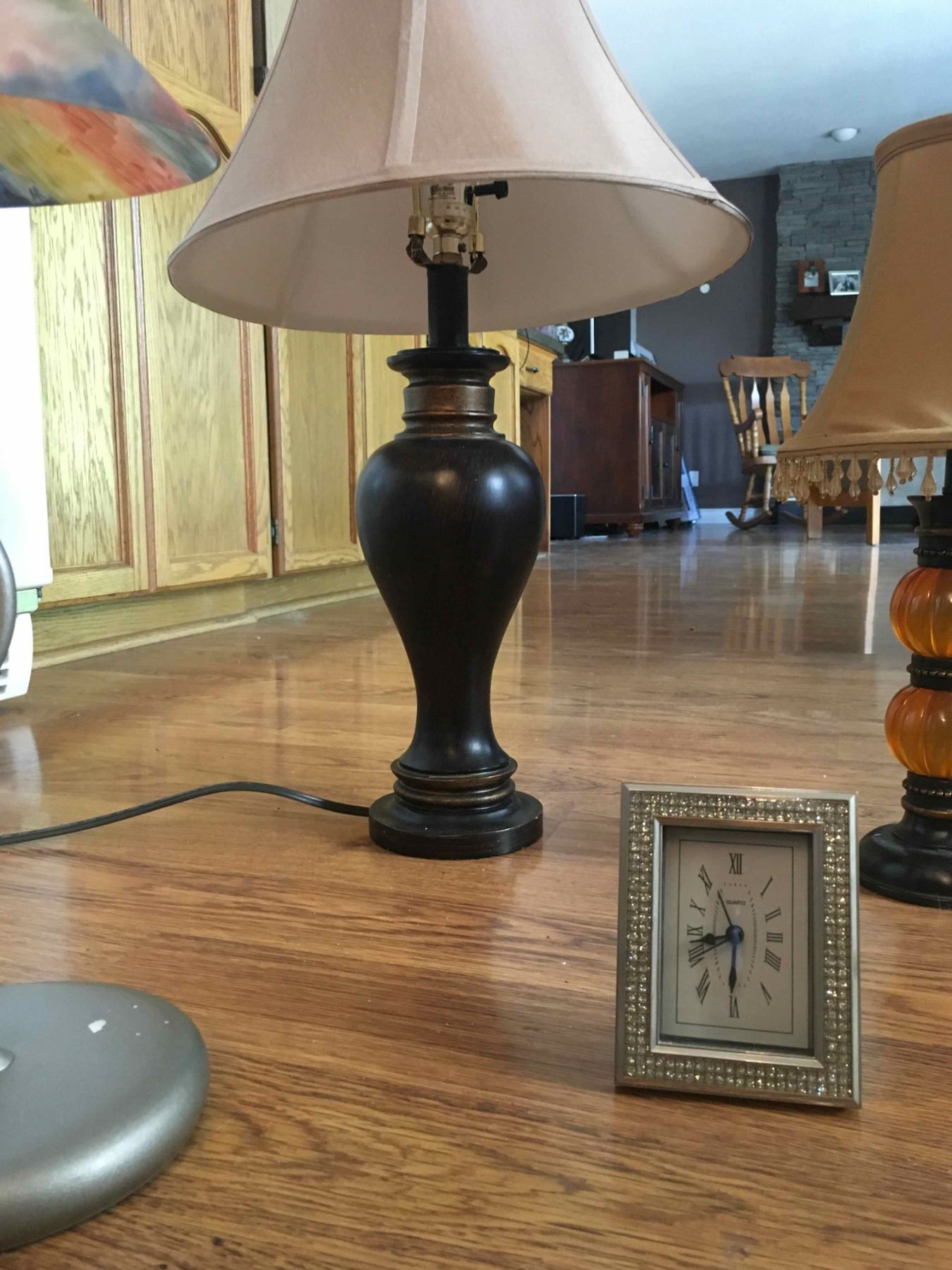 Table Lamp - 24.5 inches H, Art Deco Lamp 19.5 inches, Quartz crystal clock, Table Lamp with glass ball base - 17 inches H