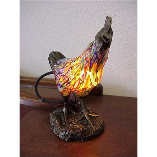 Decorative Repro Rooster Table Night Lamp. Incredible colors- Made of Glass and Metal