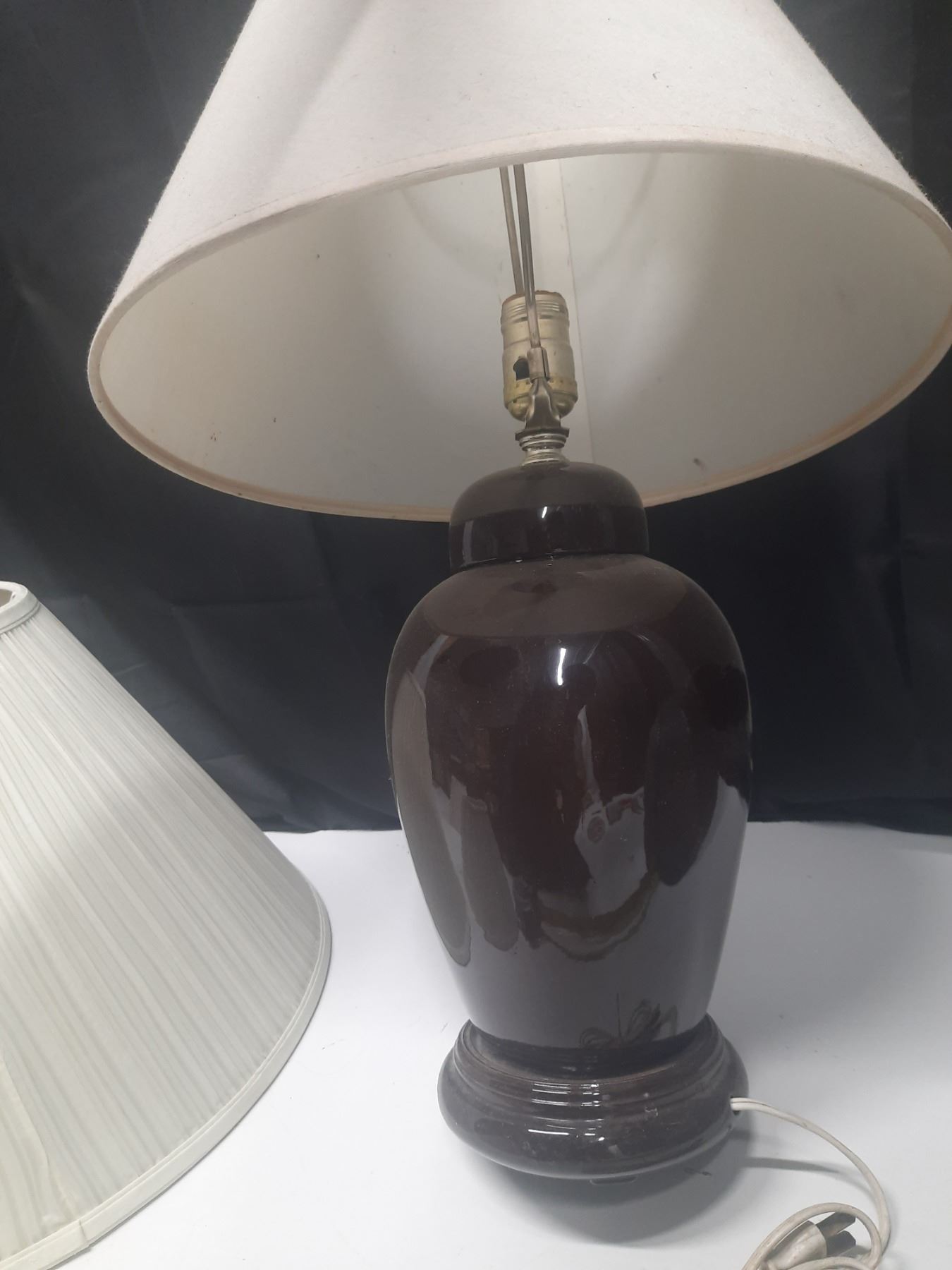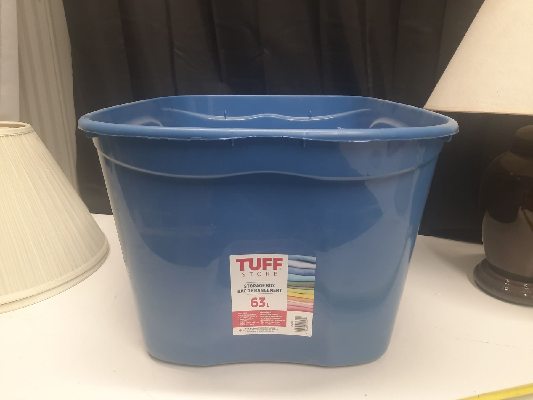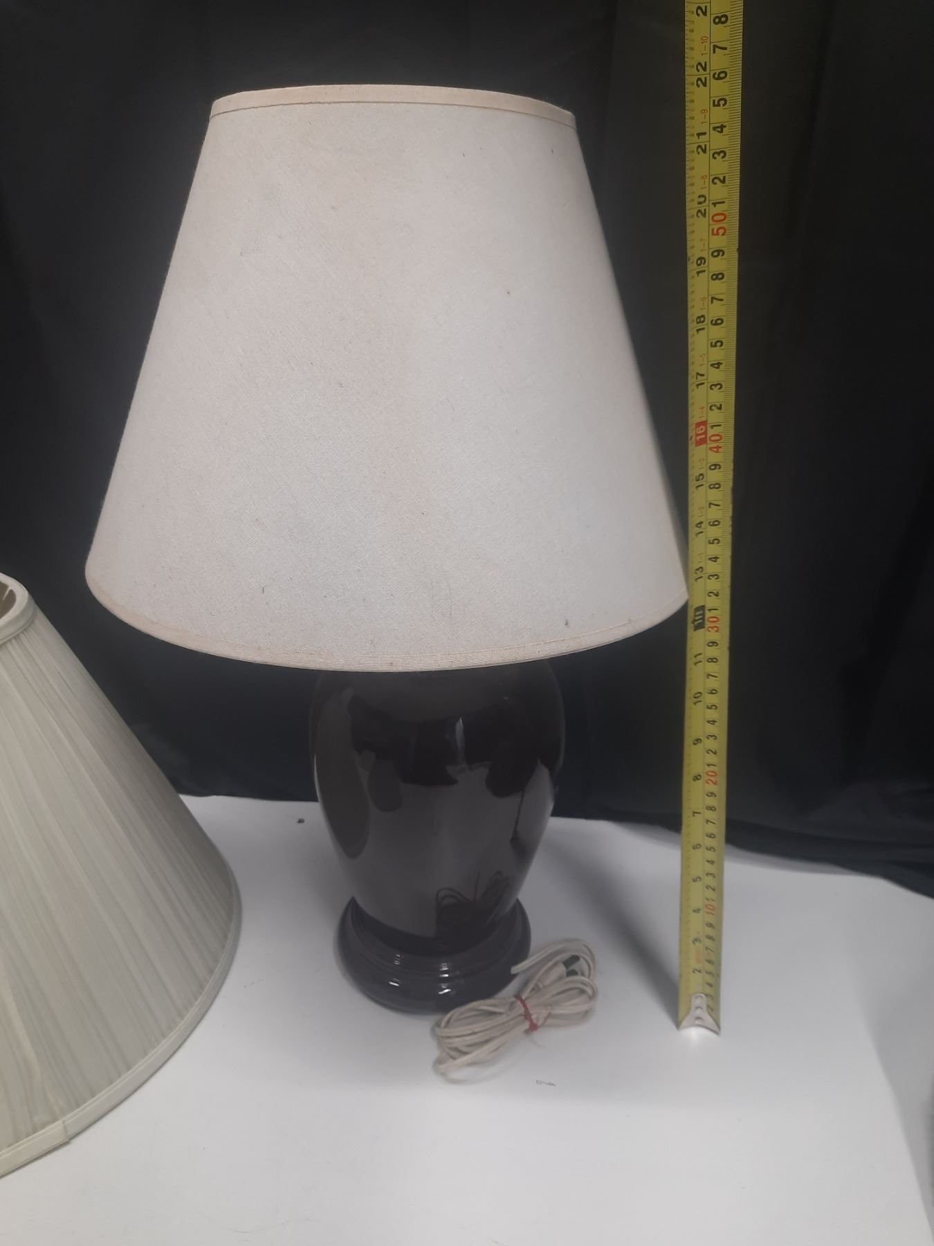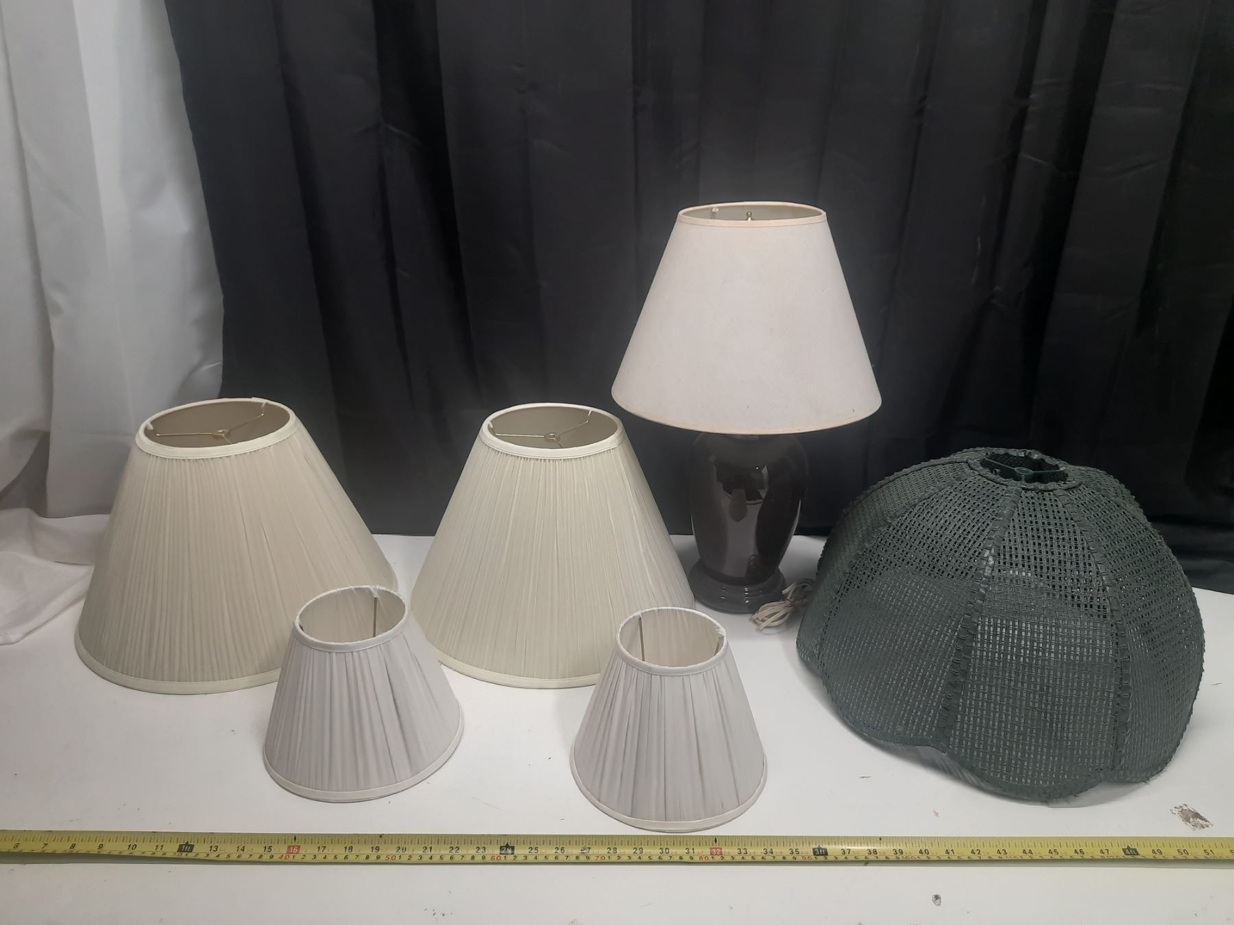 Table Lamp and 5 Different Size Lamp Shades with Blue Tote.
