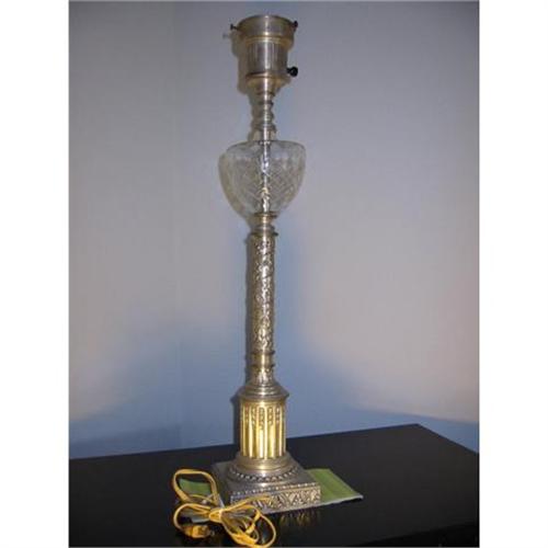 <tr><td>Title:Table Lamp silver & glass engraved grape motif!</td></tr>