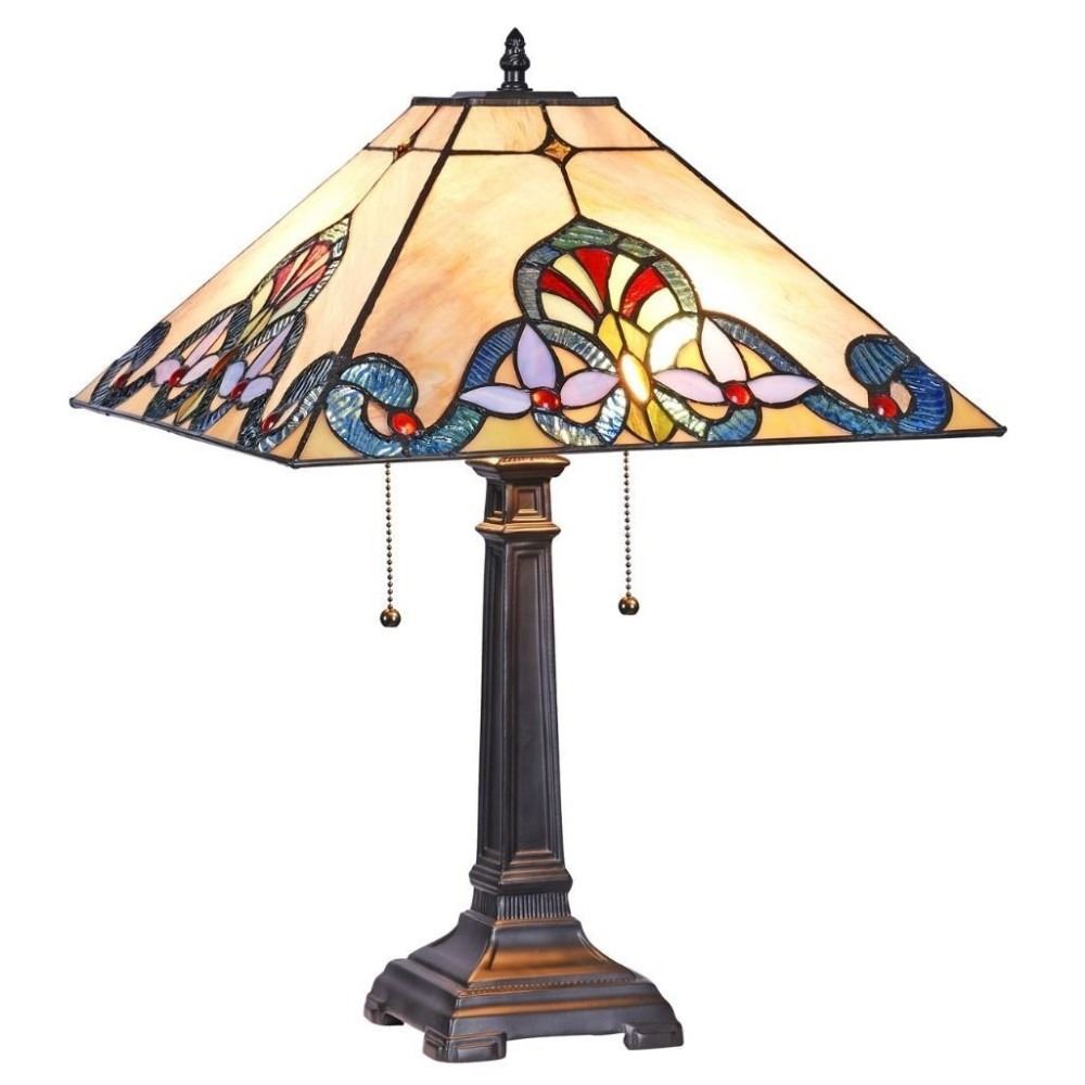 PATTY Tiffany-style Victorian 2 Light Table Lamp 16" Wide PATTY, an elegant Tiffany-style 2-light table lamp makes any tabletop glow in glamorous. It is a perfect lamp by your bedside or on your favorite reading desk. Glass TypeTiffany-glass Net Weight (lbs)8.16 Overall Length (in)15.94 Overall Width (in)15.94 Overall Height (in)22.00 Shade Width (in)15.70 Shade Height (in)7.09 Shade Diagonal (in)22.00 Base Width (in)5.71 Base Height (in)17.32 Base/Stem Materials Resin; Metal Electric Wire Length (in)72 Threaded Pipe/Finial Length (in)5.43 Threaded Pipe/Finial Material Metal Light Bulb Types(2) 100 Watt max E26 Type A Bulb (not included) Switch Type Pull chain Est. Glass Cuts 216 Light Direction Downlight Specific Uses Indoor Finish Blackish Bronze Overall Materials Glass, resin, metal & electrical components Glass Thickness (in)0.12 Shade Shape Square Â