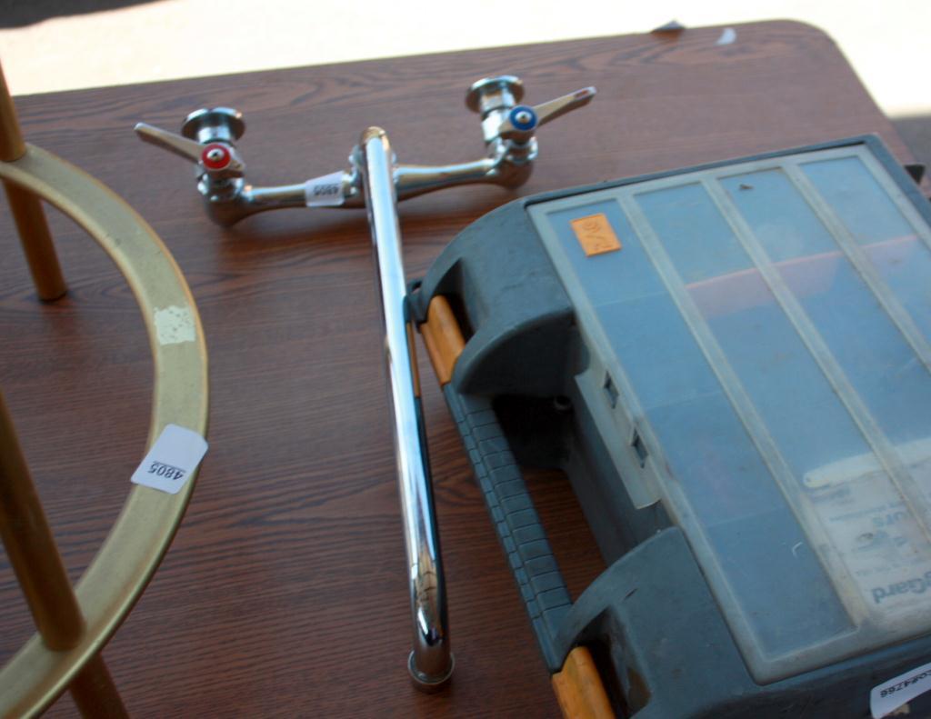 Table Lot Of Misc. Globe, Sink Head, Table,