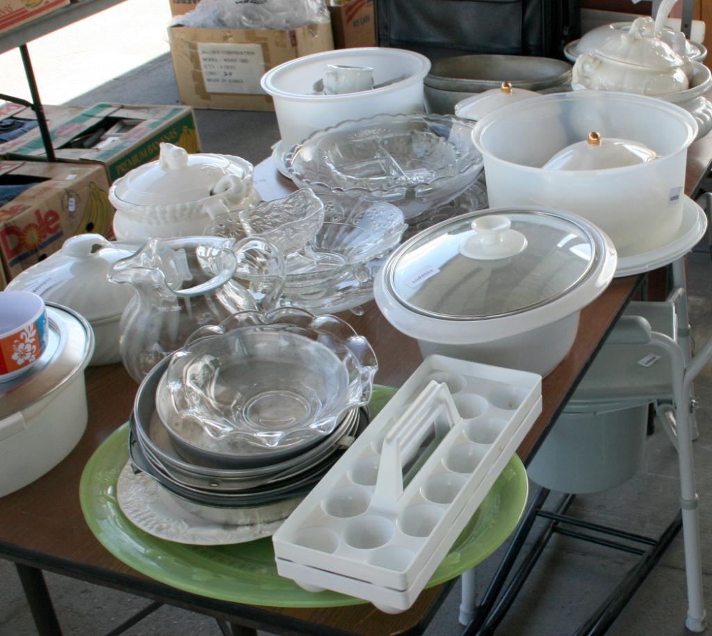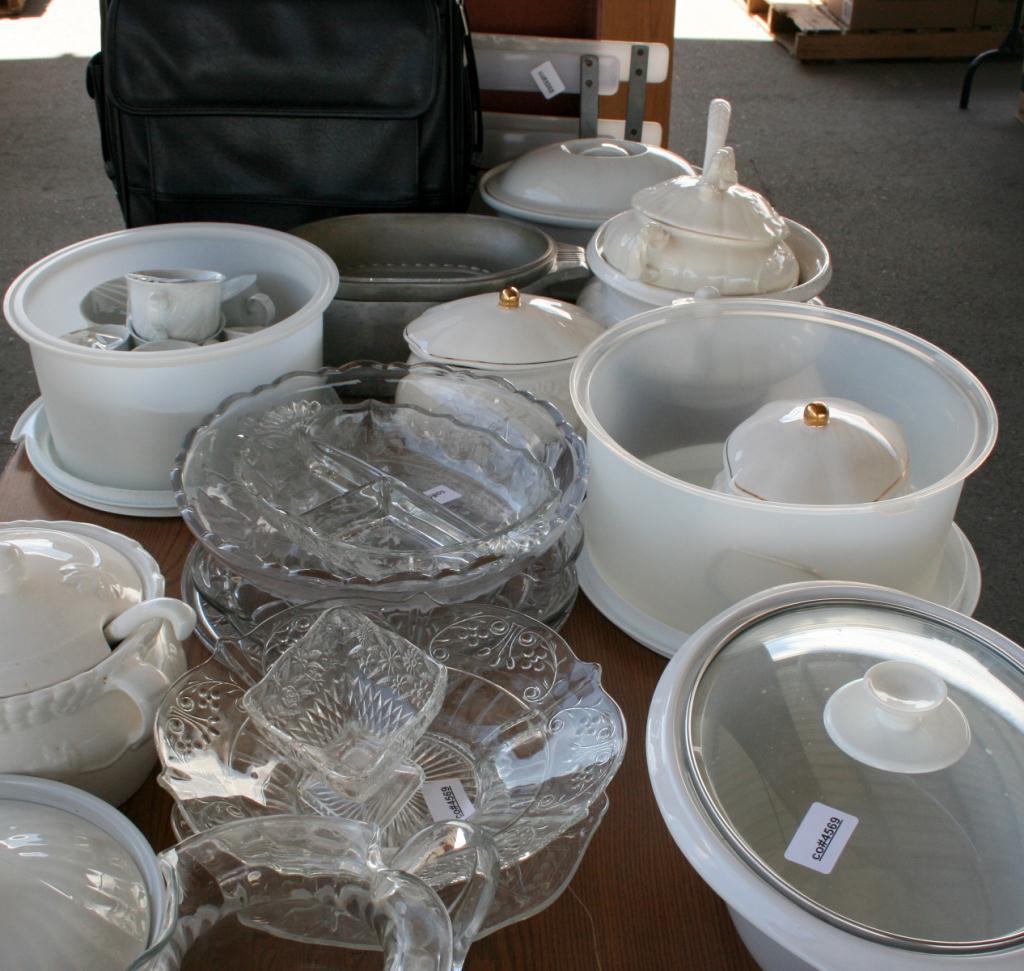 Table Lot Of Misc. Kitchen Plates & Bowls, Case
