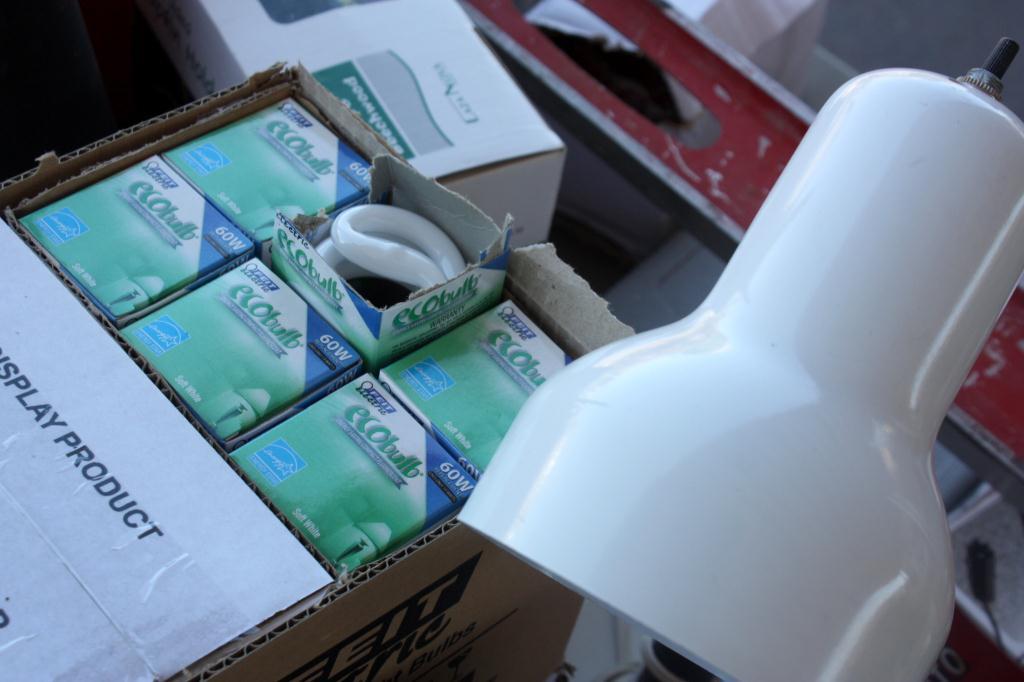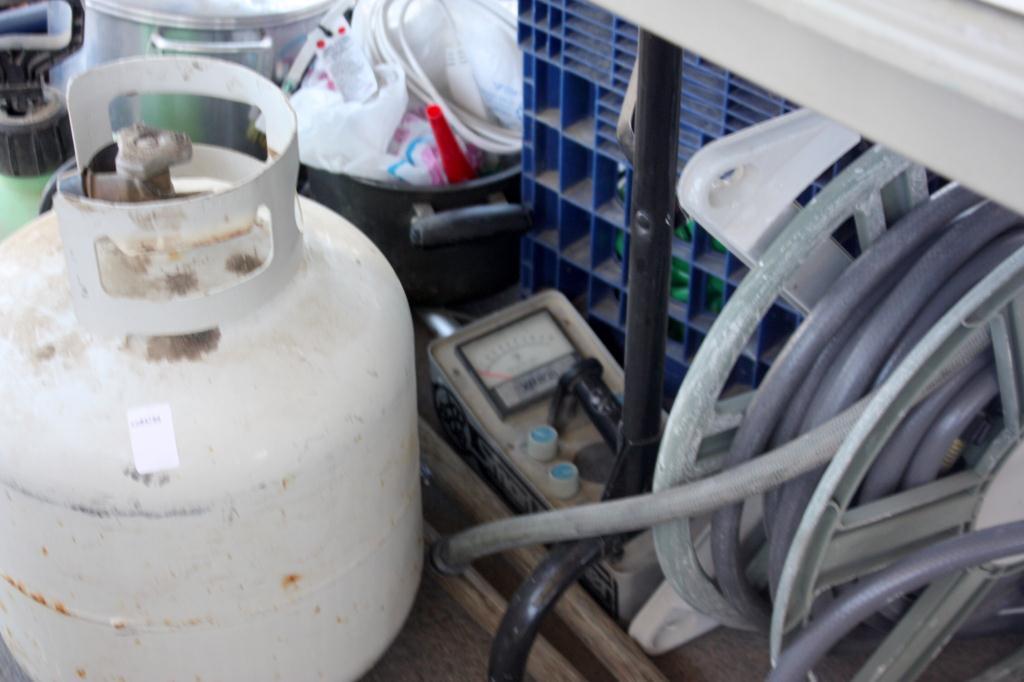 Table Lot Of Misc. Light Bulbs, Propaine Tanks,