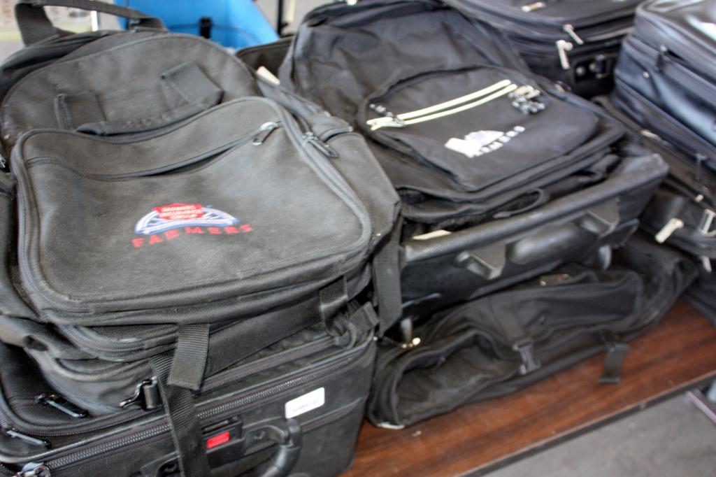 Table Lot Of Misc. Suitcase, & Back Packs