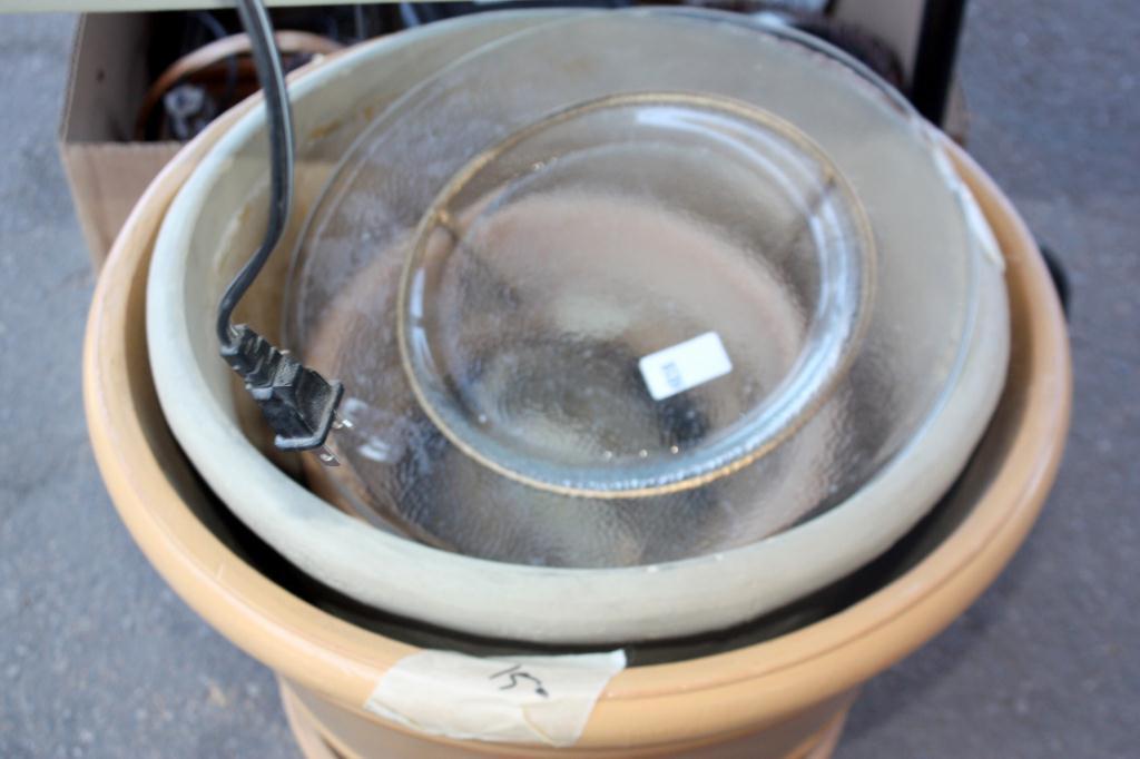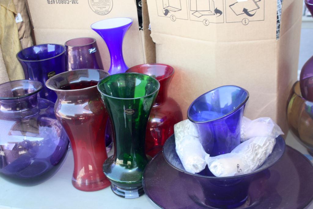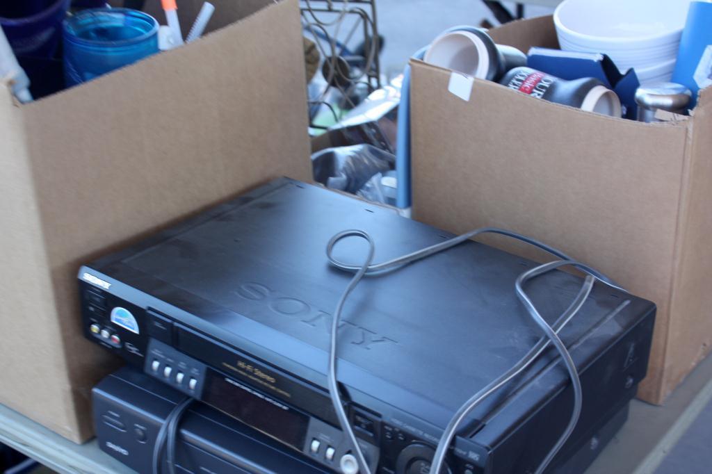 Table Lot Of Misc. VHS, Cups, Plant Pots, Vases,