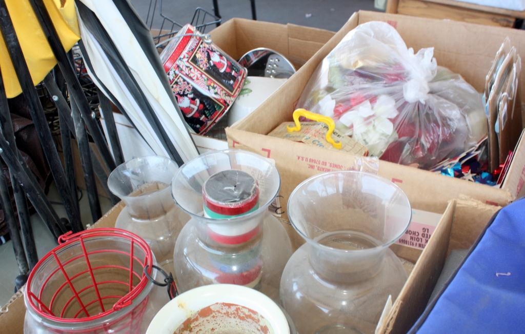 Table Lot Of Misc. Vases, Extension Chord,