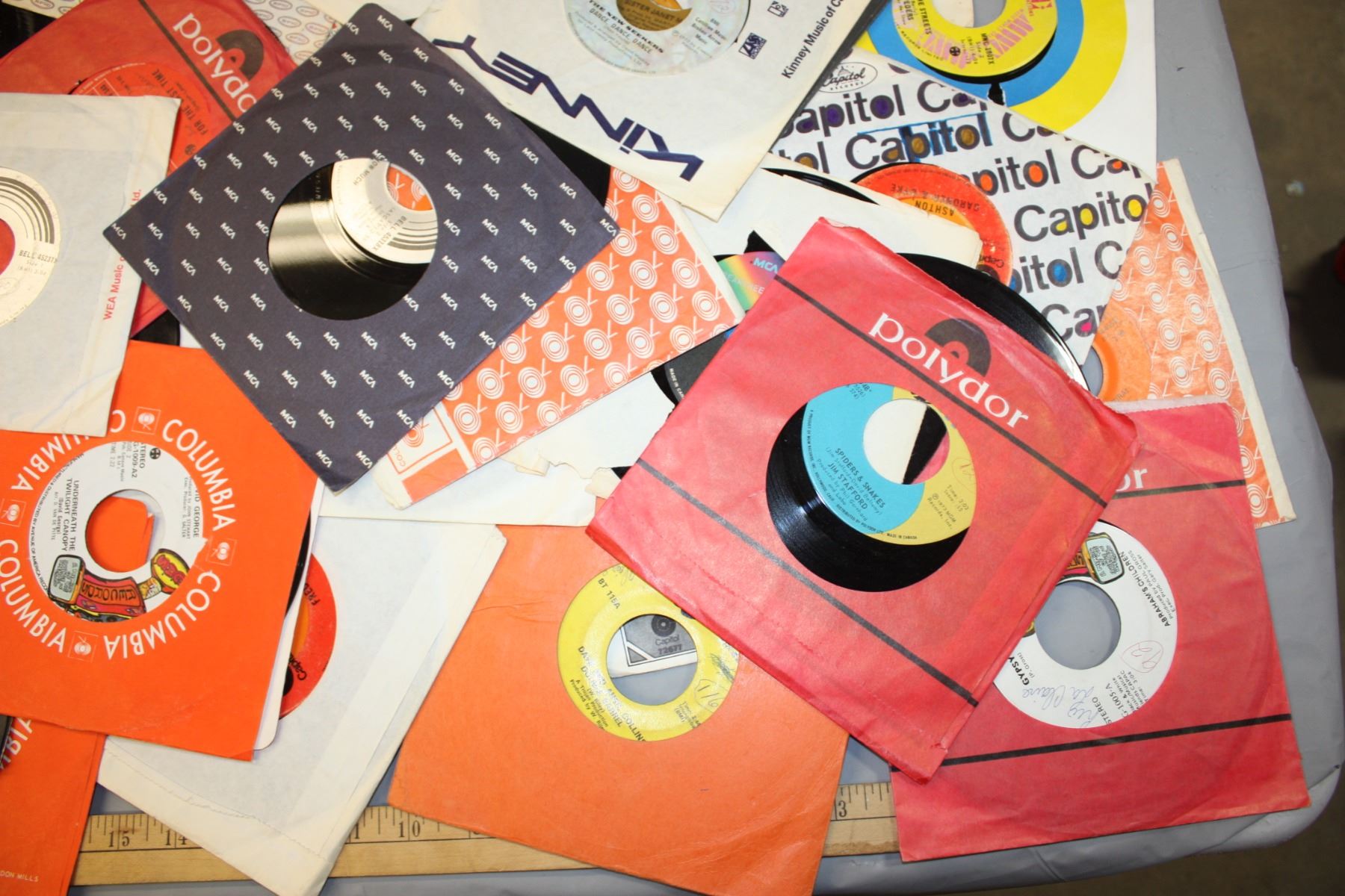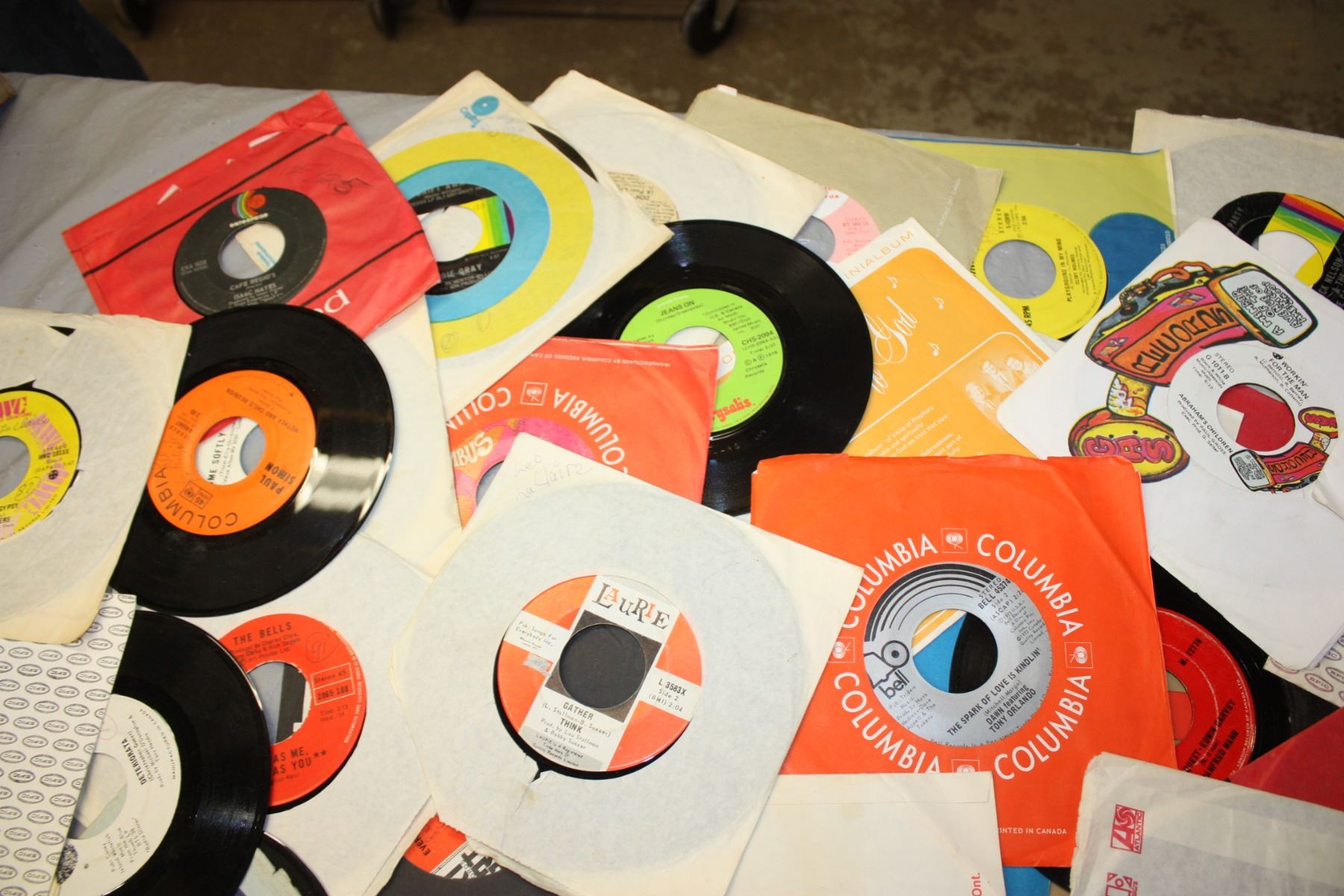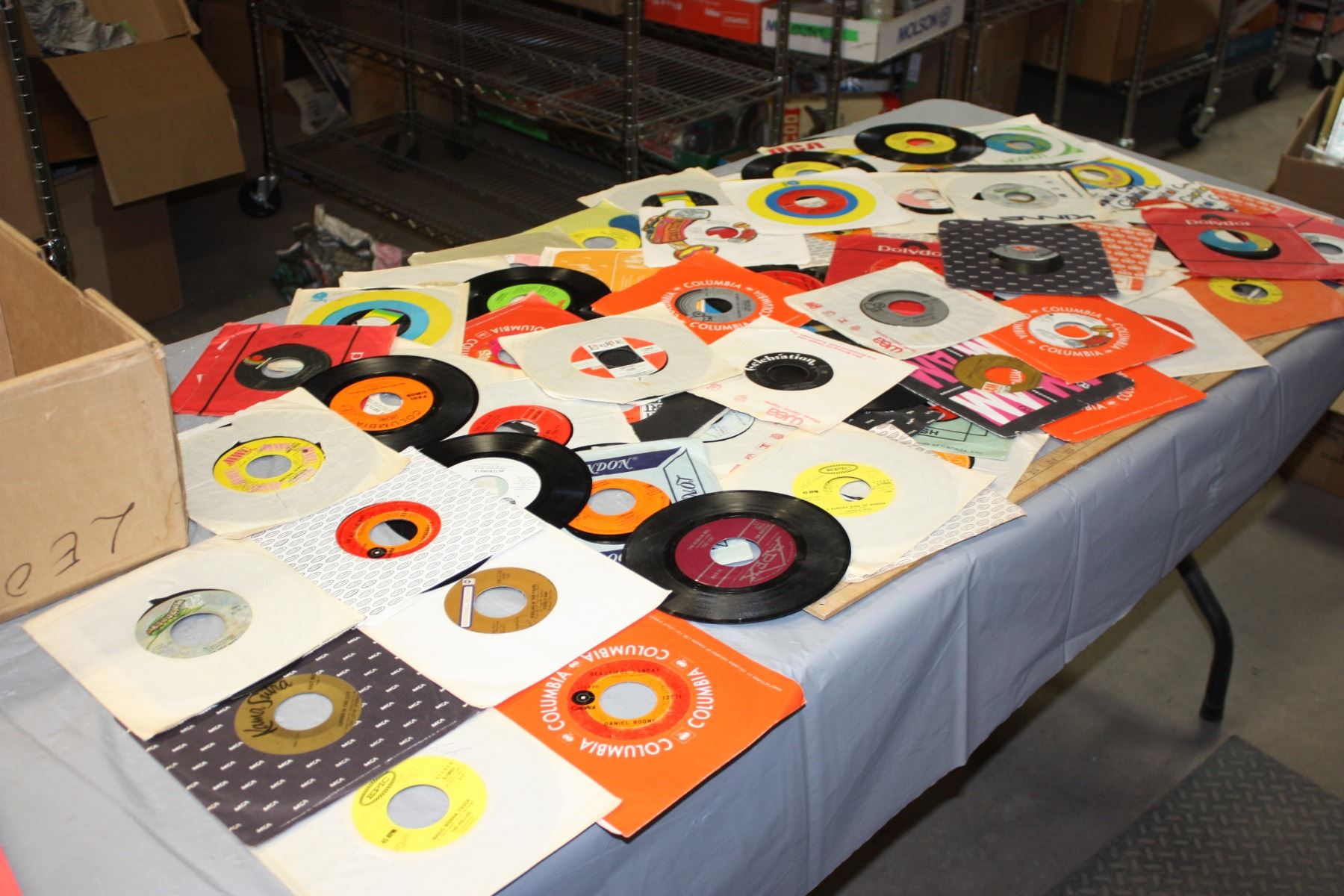 Table Lot of 45s Records