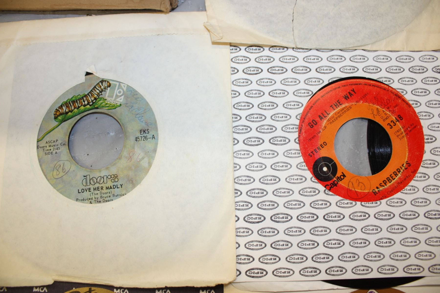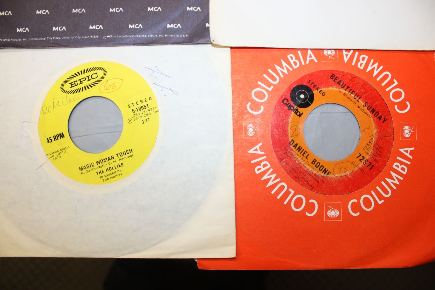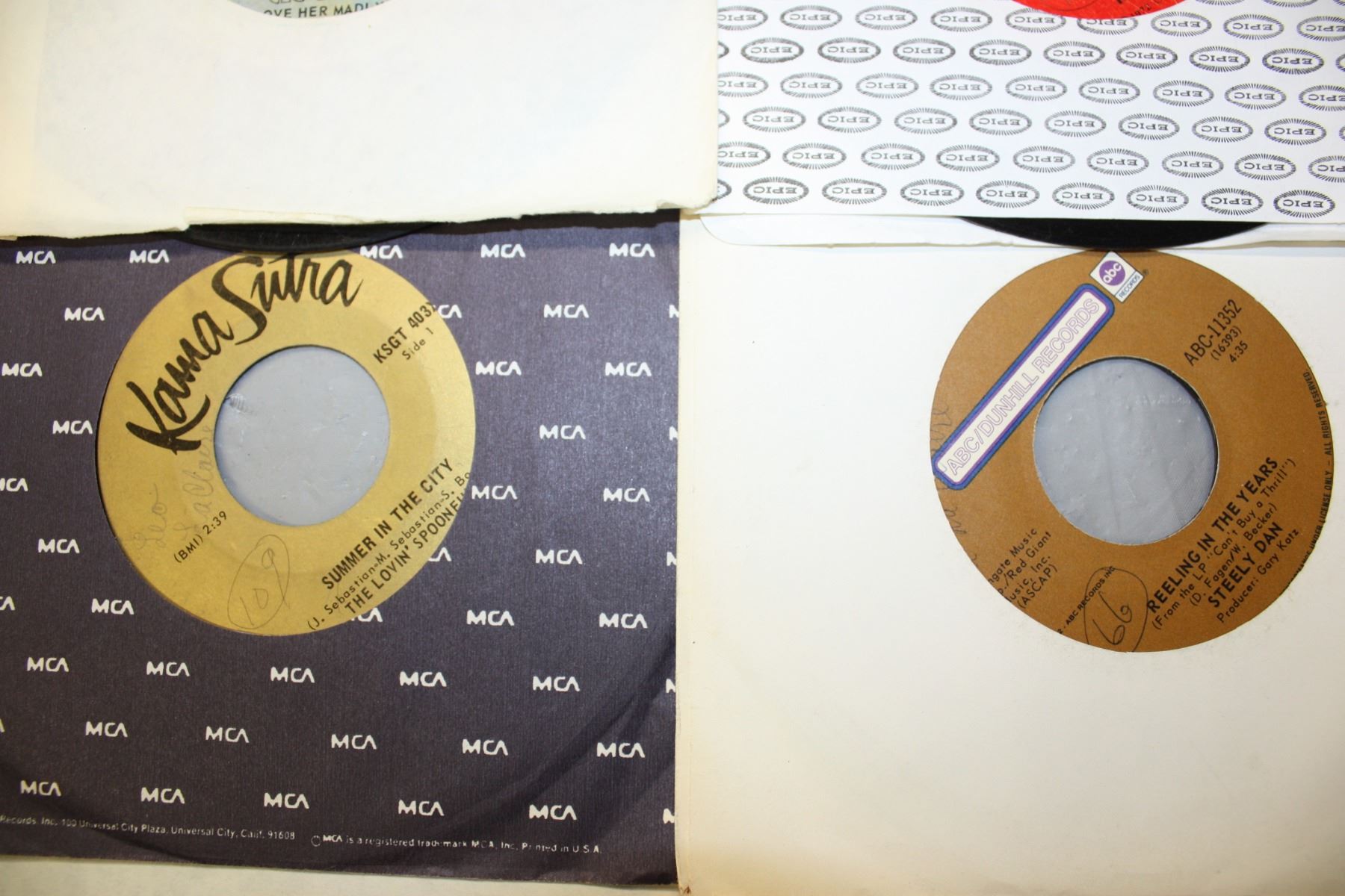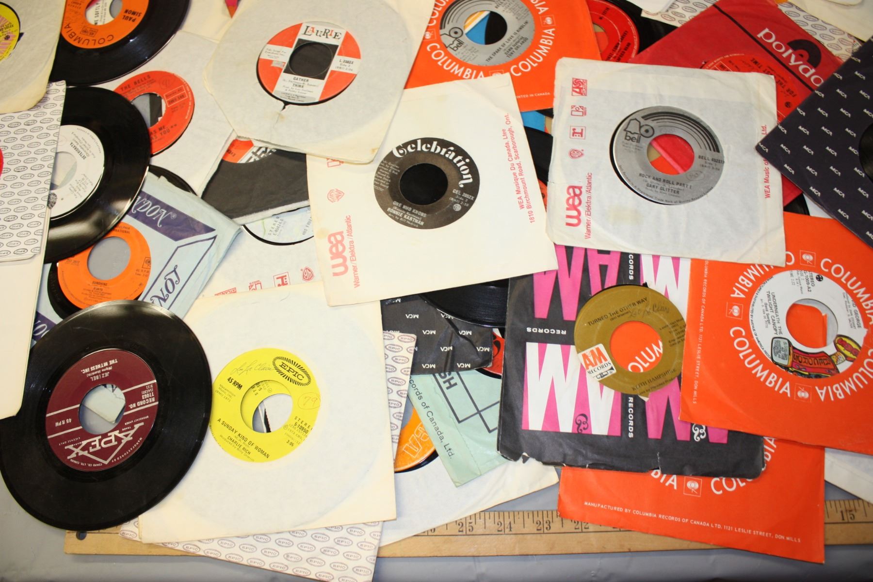 Table Lot of 45s Records