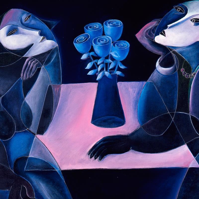 "Table Of Negotiation" is a limited edition serigraph on archival paper by Yuroz. The piece is hand signed by the artist, numbered, and accompanied by a certificate of authenticity. Measures approximately 36" x 48" (image).