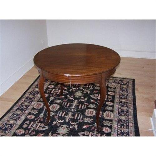 Solid flamed-ribbon Mahogany round parlor-Occasional table. Very functional table in a natural mahogany color protected by a satin finish. Double footed hand carved pawfoot with three toenails at bottom foot. Circa. 1920-1940