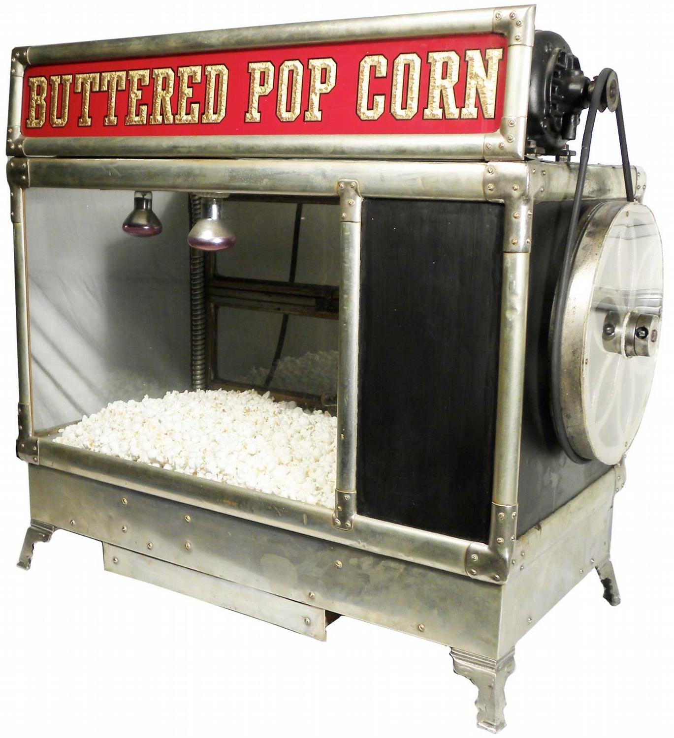 Table Top Electric Pop Corn Popper. Reverse Glass Light Up Marquee. Very good original working condition. 34 X 30 1/2 X 17 inches.