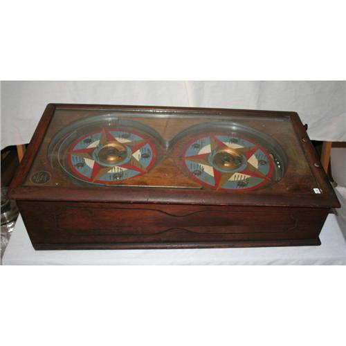 Five Star Final Table Top Pinball - Walnut stained case measures approximately 17" x 32" x 8" H.  Graphics on stars good.