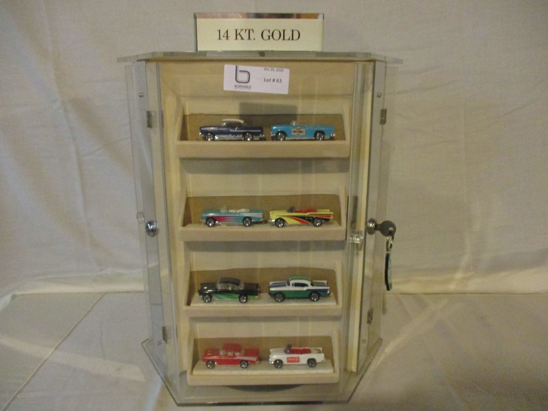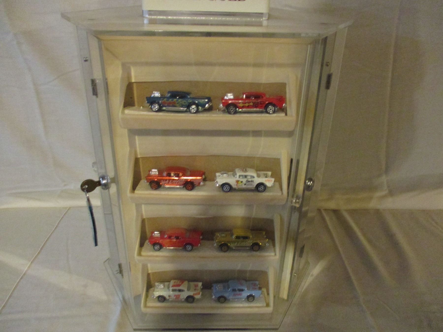 Table Top Plastic Rotating Showcase with Key 17" T and 32 Chevrolet Cars and Hot Rods