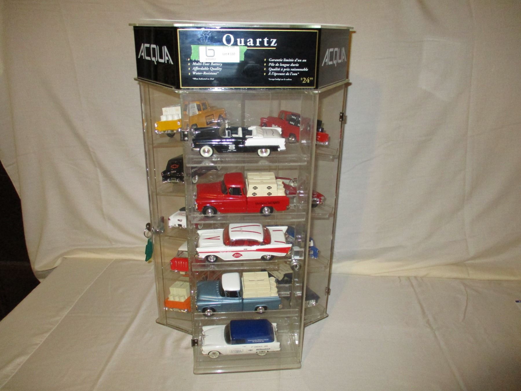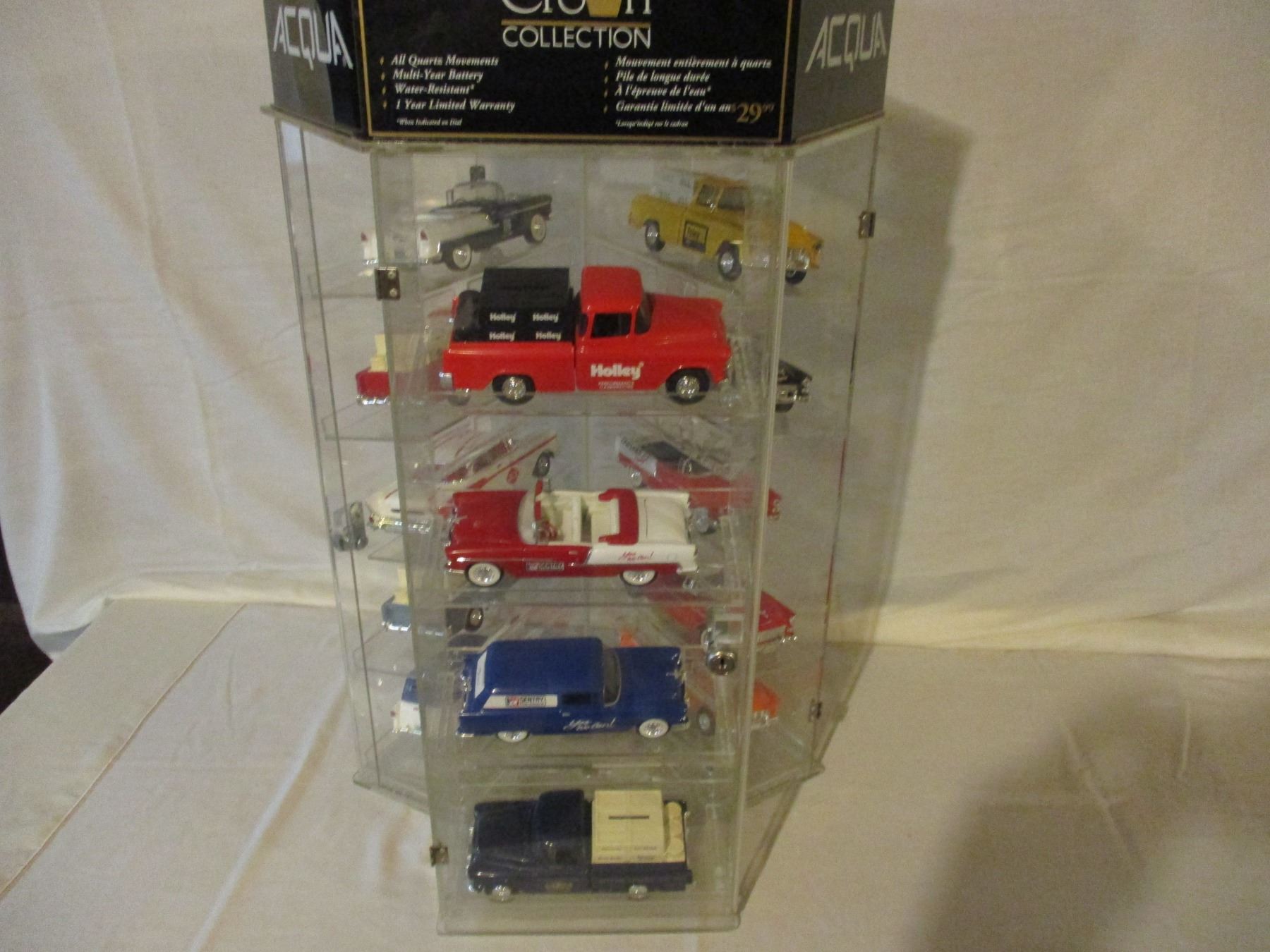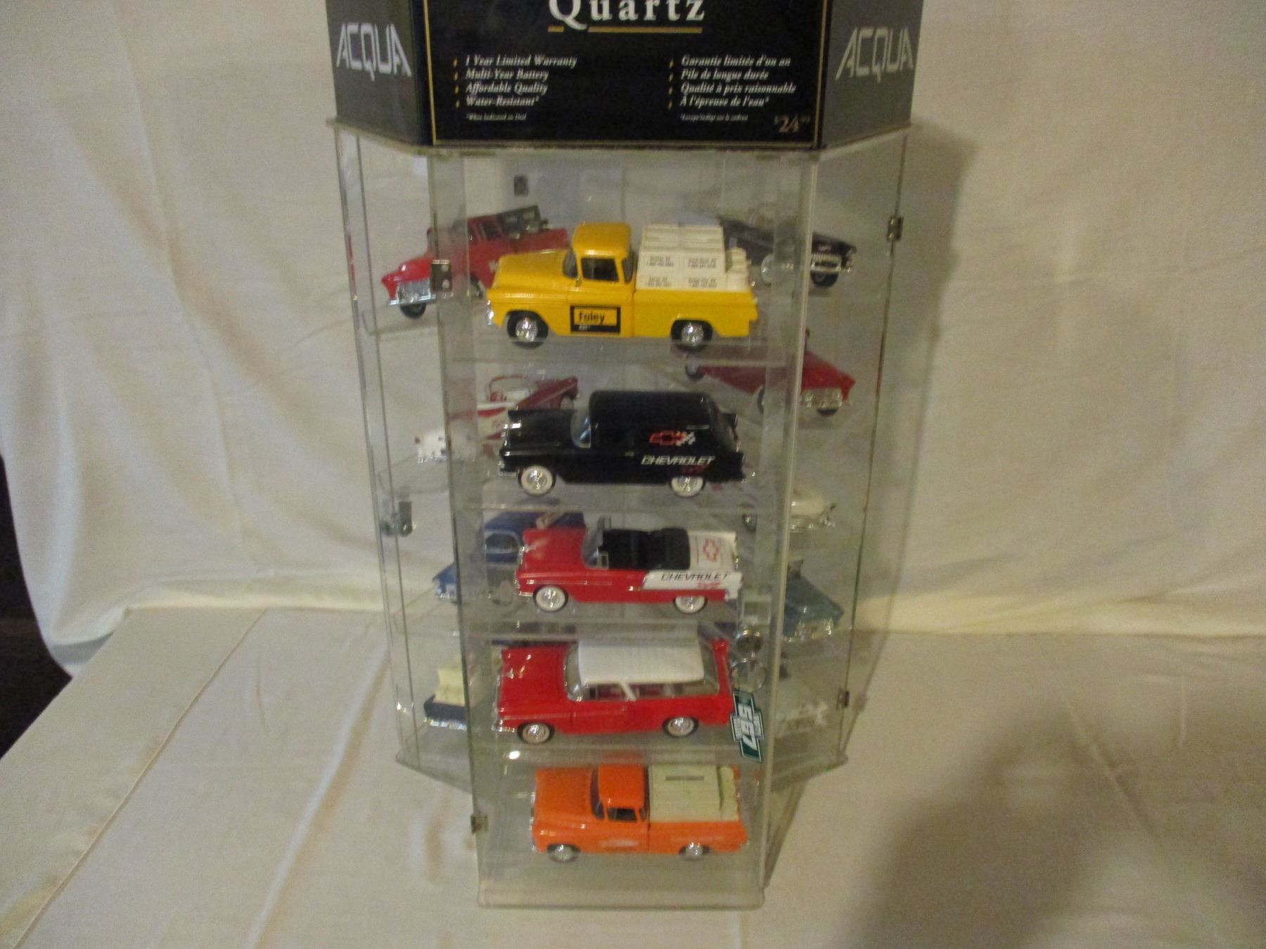 Table Top Rotating Showcase with Lock and Key 29" T with 14 1950s Chevrolet Car and Truck Models