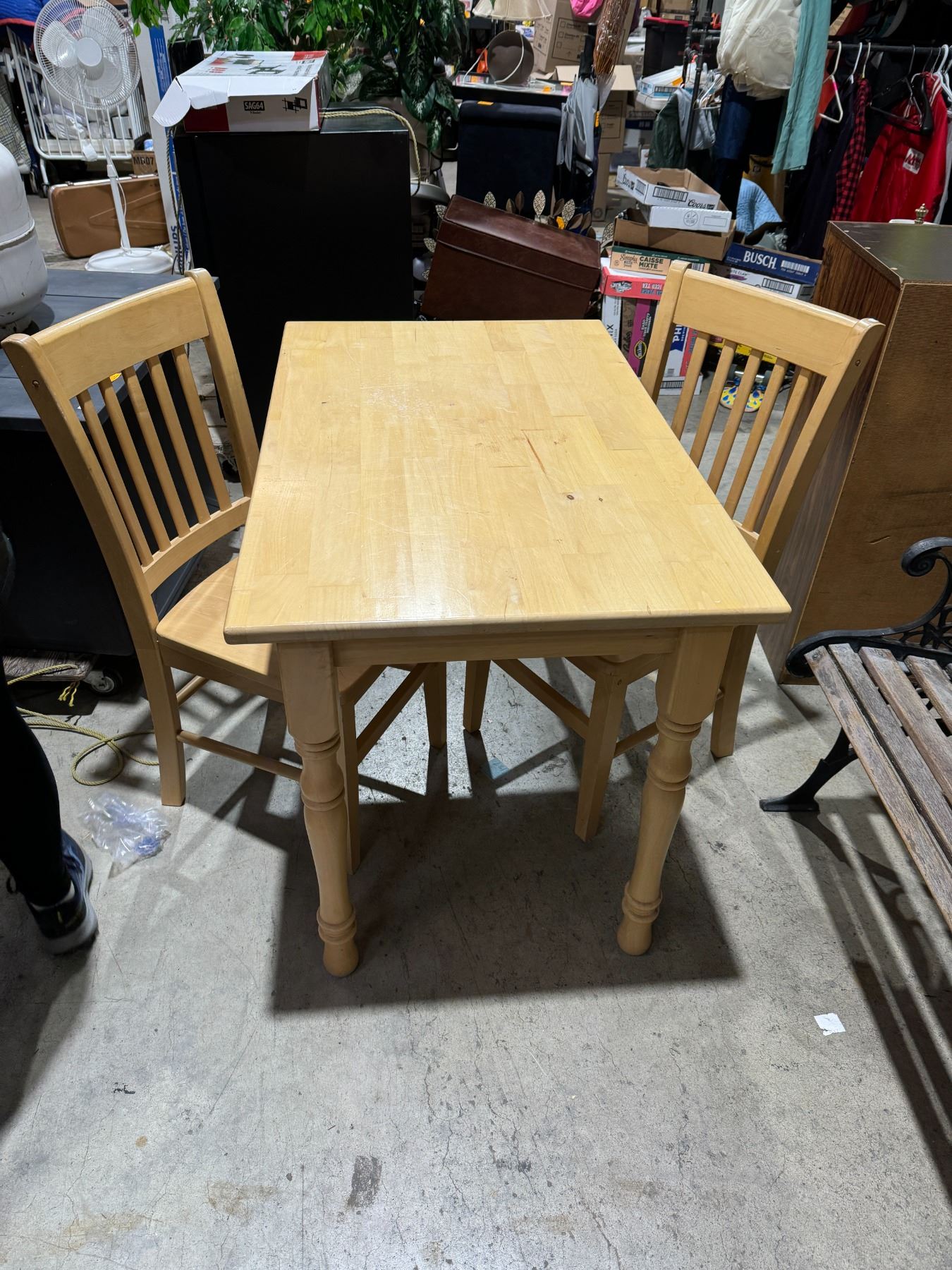 Table and two chairs table measures 41 and three-quarter inches by 26" x 29" tall