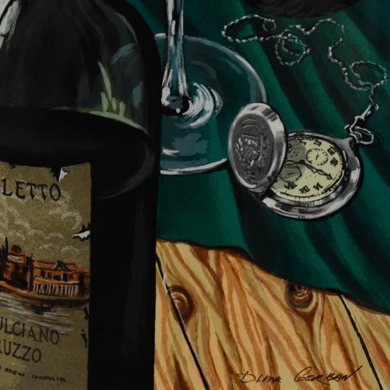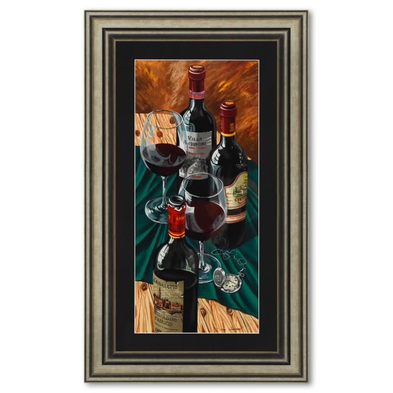 "Table for Two" is a limited edition serigraph on paper by Dima Gorban, numbered 59/495 and hand signed by the artist. This piece comes custom framed. Includes Letter of Authenticity. Measures approx. 21" x 35" (frame), 11.5" x 26" (image).