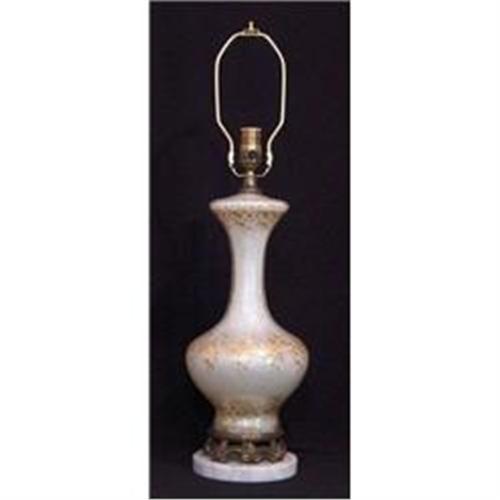 CIRCA 1960 GLASS AND MARBLE LAMP RESTORED.</em></td>