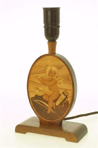 Table lamp with cupid, rosewood/pear/maple, Mjölby intarsia, H 30, SEK 500
