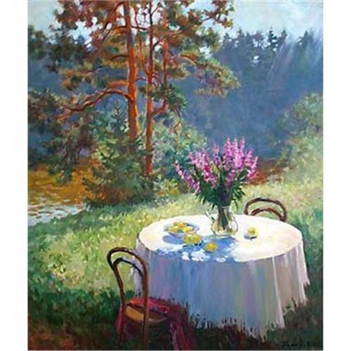 <tr><td><font size="2" face="Arial, Helvetica, sans-serif"><strong><font color="#000033">Title:</font></strong>"Table near dacha" - Russian traditions school</font></td></tr>