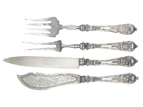 Two knives with steel blades and two forks, neo rococo style silver terminals. The terminals are slightly damaged. Marked: Viennese import mark, late 19th century.