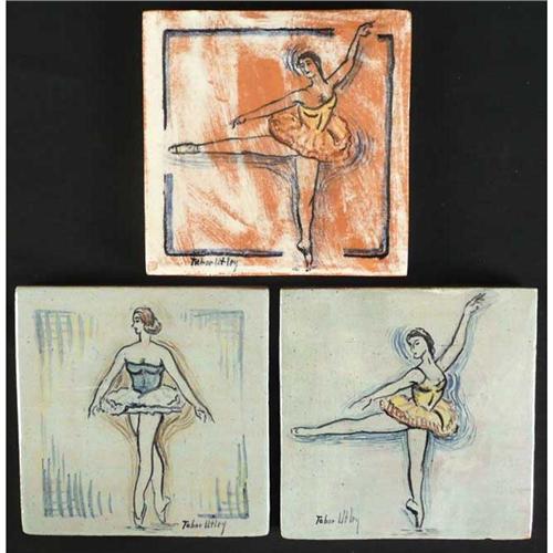 Tabor Utley (1891-1978) Broadmoor Art Academy, Ceramic, 3 Dancing Figure Tiles, 3- 5 3/8" Tiles.