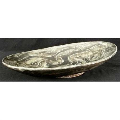 7787 Tabor Utley (1891-1978) Ceramic Black/Aqua Oblong Bowls Signed on bottom 2 1/2" x 14 1/2"