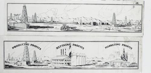 Tabor Utley (1891-1978) Pen & Ink Rare example of Tabor's commercial art career Oil Fields 1924 4 1/4 x 16"