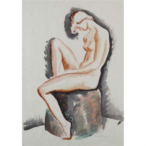 7804 Tabor Utley (1891-1978) Watercolor Nude Signed lower right 20" x 14" Provenance: From the Artist's Estate