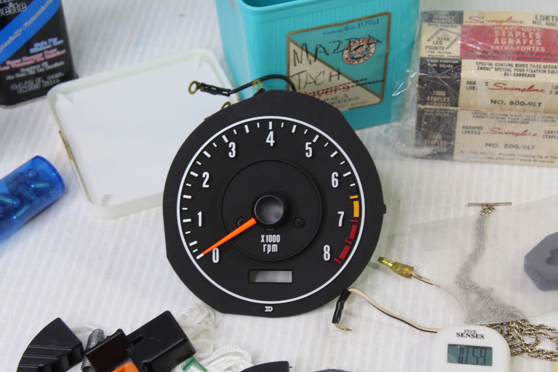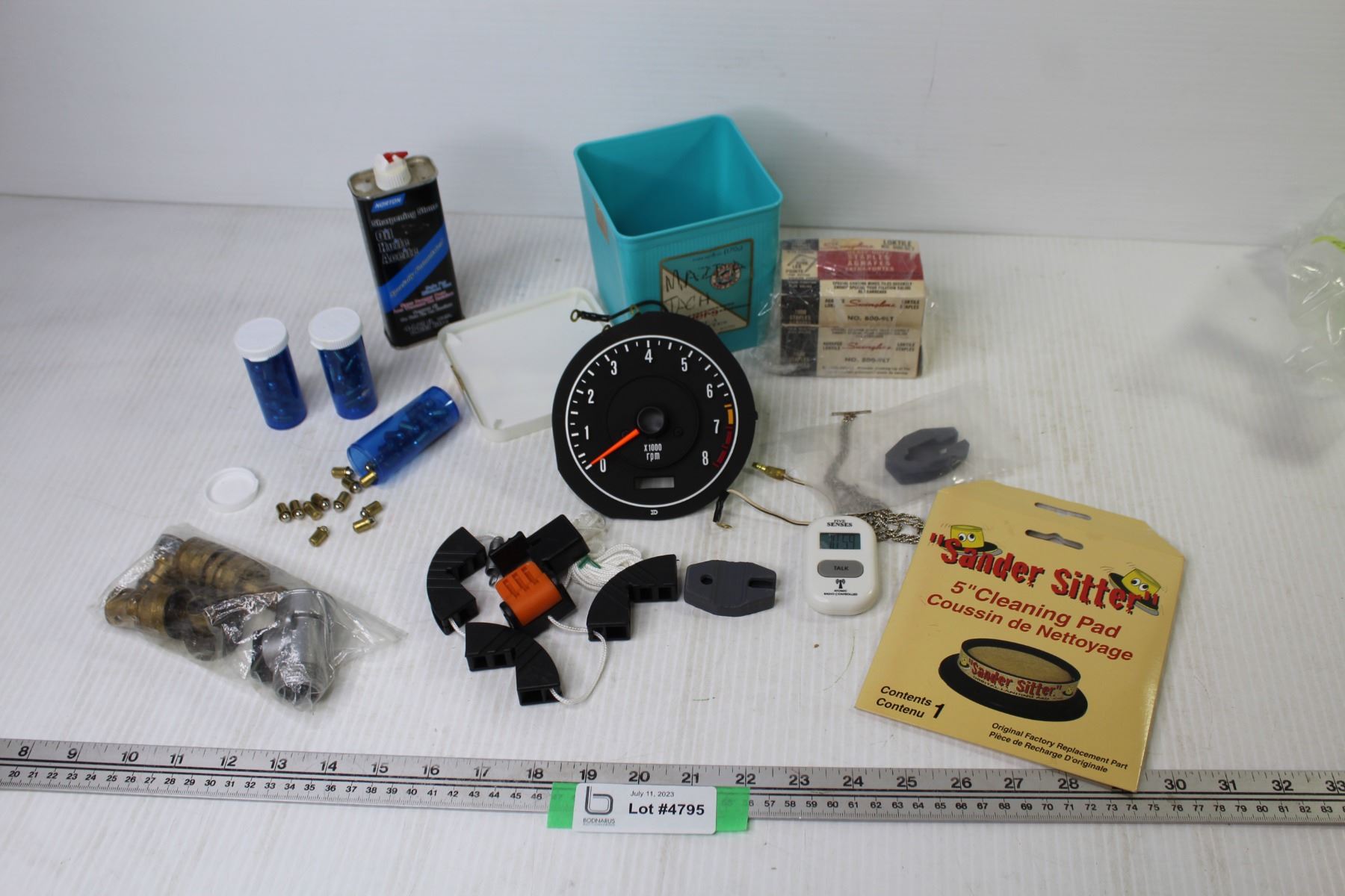 Tachometer Face - Shapening Stone Oil - Vintage Staples - Ball Detents Cabiney Making - 5" Cleaner Pads - Five Senses Controller