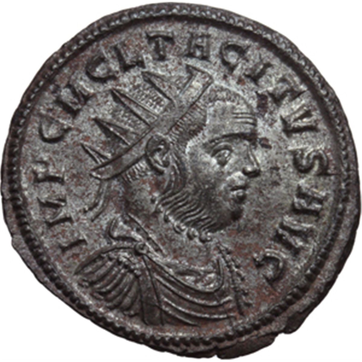 Impero Romano. Tacito (275-276). Antoninaino, Siscia. D/ IMP CM CL TACITVS AVG. Busto radiato, drappeggiato e corazzato a destra. R/ VICTORIA GOTTHI. Vittoria stante a sinistra tiene corona e ramo di palma. In esergo: P. RIC 172. C.157 (Fr.6). AE. g. 3.52 mm. 22.00 R. Raro. Piena argentatura. SPL.