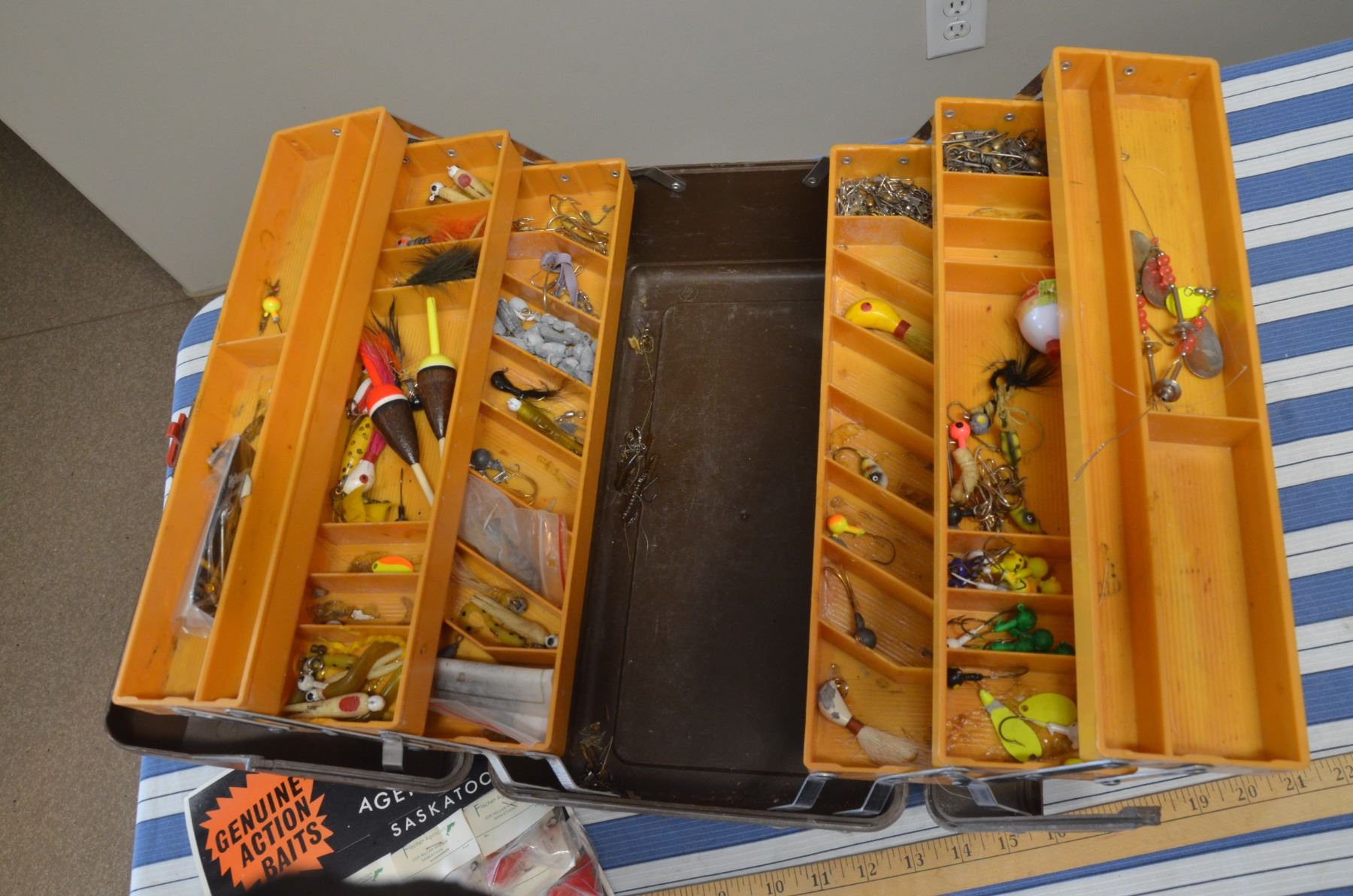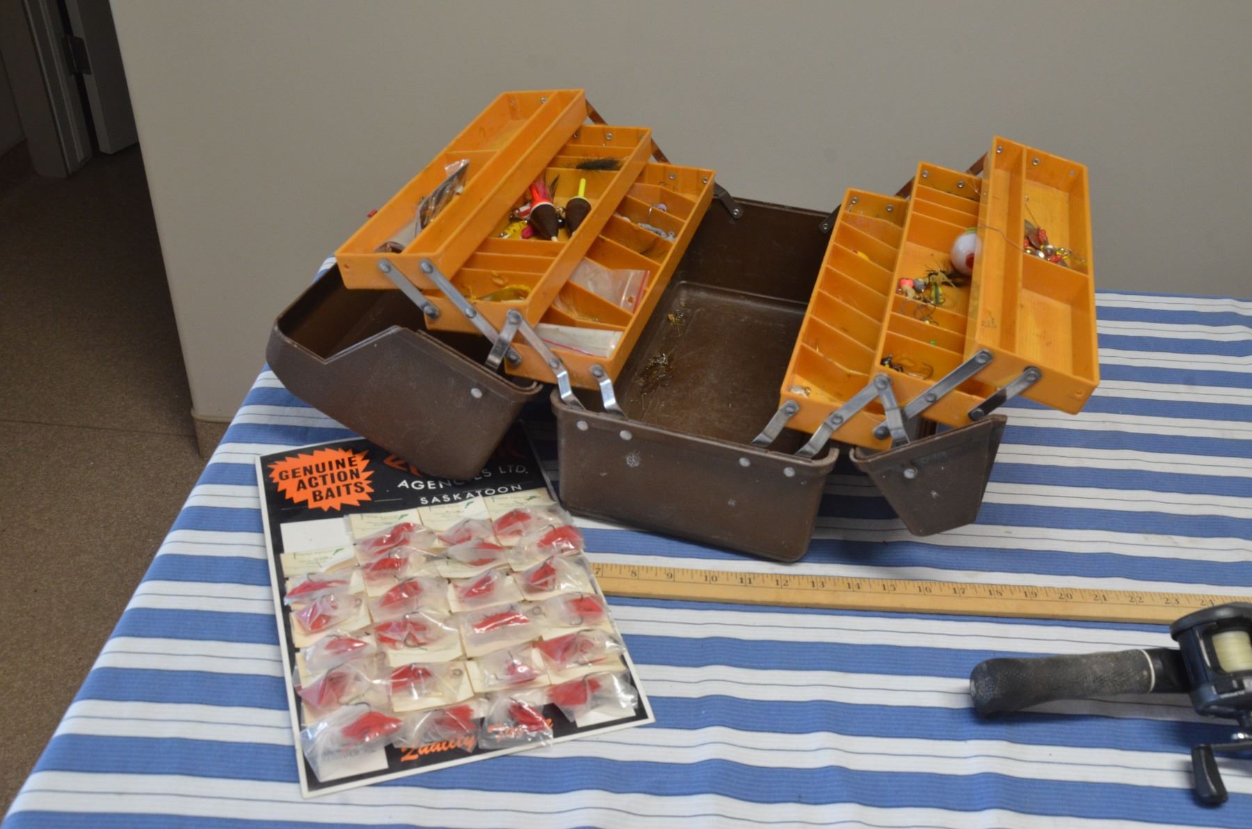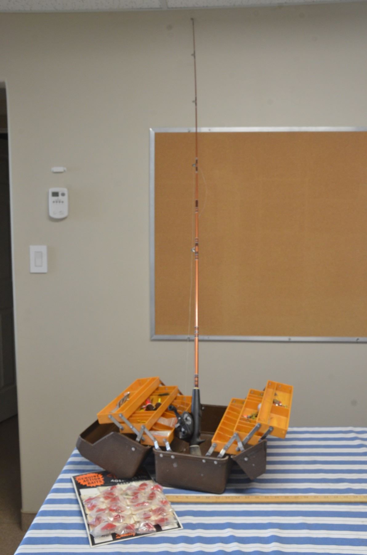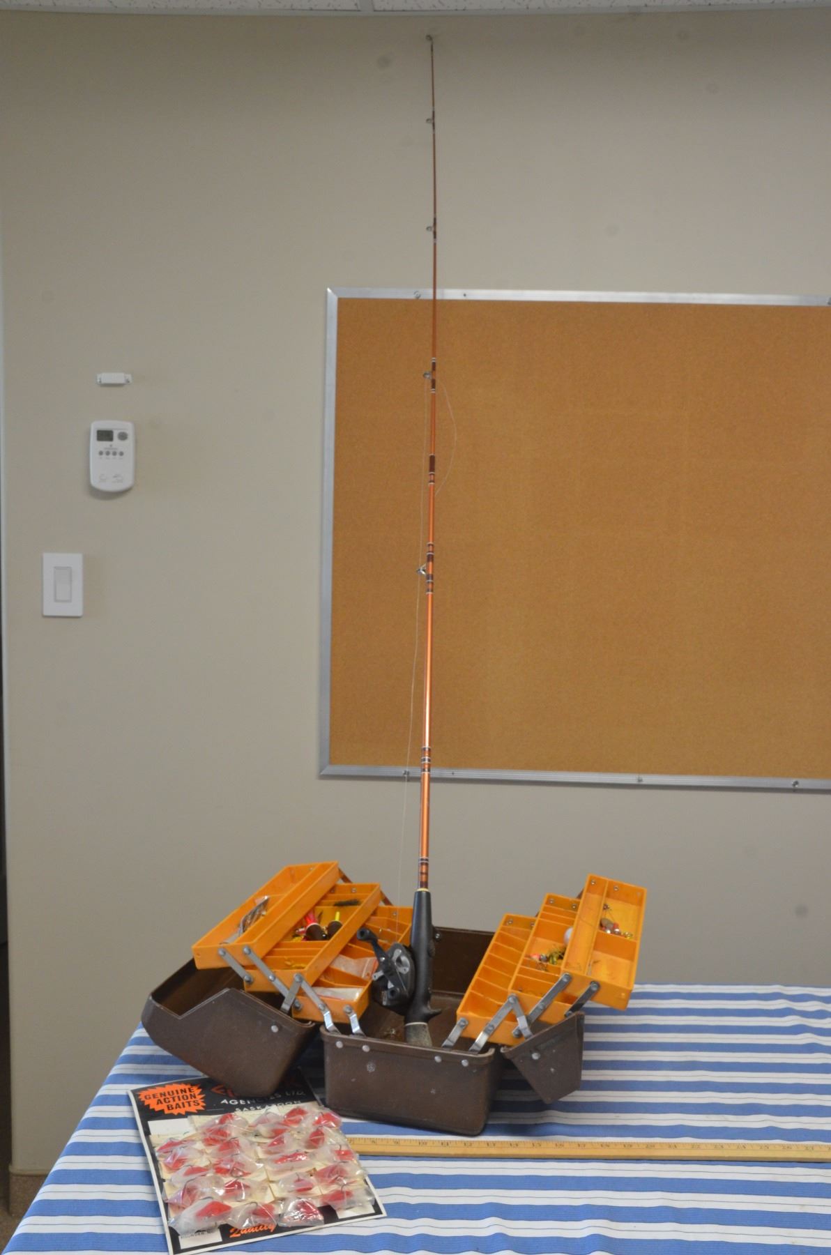 Tackle Box Rod and Reel & 3 Pronged Hooks