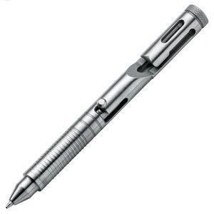 The bolt action mechanism and click open and close will make it difficult to put this piece down. The flat pen head provides a secure thumb rest, making it an effective self defense tool as well. The sturdy clip has minimal give to provide a comfortable draw resistance in normal tactical or denim pants pockets. The body of this new tactical pen, CID .45 CAL is CNC milled titanium, providing style and optimum ergonomics. Overall length: 5 inch. Features Overall length: 5.00 in. Material: titanium Weight: 1.10 oz.