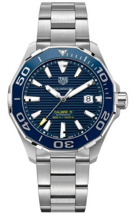 Model: WAY201B.BA0927 - CASE = [Material:Stainless Steel], [Case Diameter:43], [Bezel:Uni-Directional Rotating], [Case Back:Solid], [Water Resistant:300 Meters - 1000 Feet], [Crystal:Scratch Resistant Sapphire], DIAL = [Color:Blue], MOVEMENT = [Type:Automatic], [Crown:Push In], BAND = [Clasp:Folding], [Type:Stainless Steel], (In Stock - Ready to ship.)
